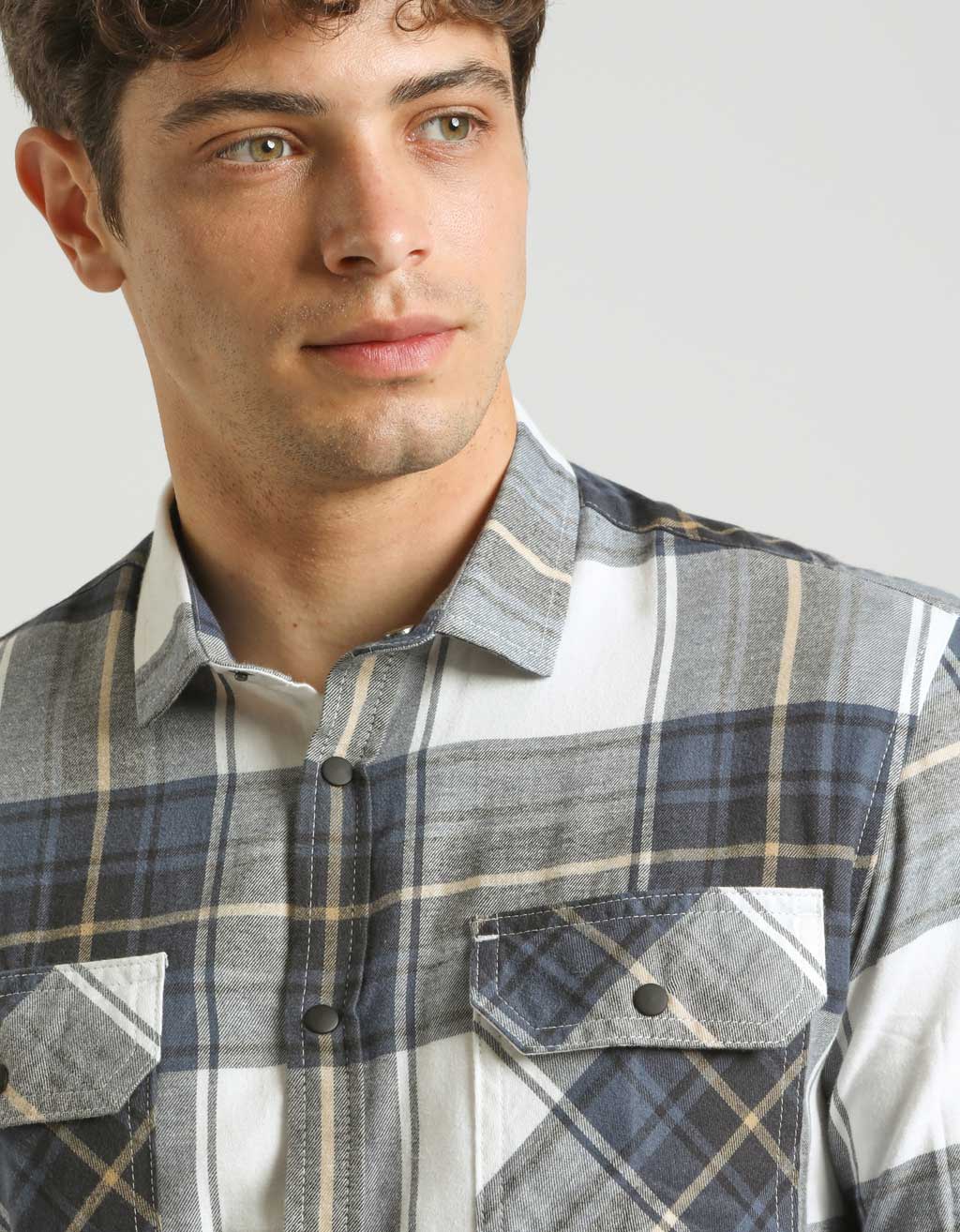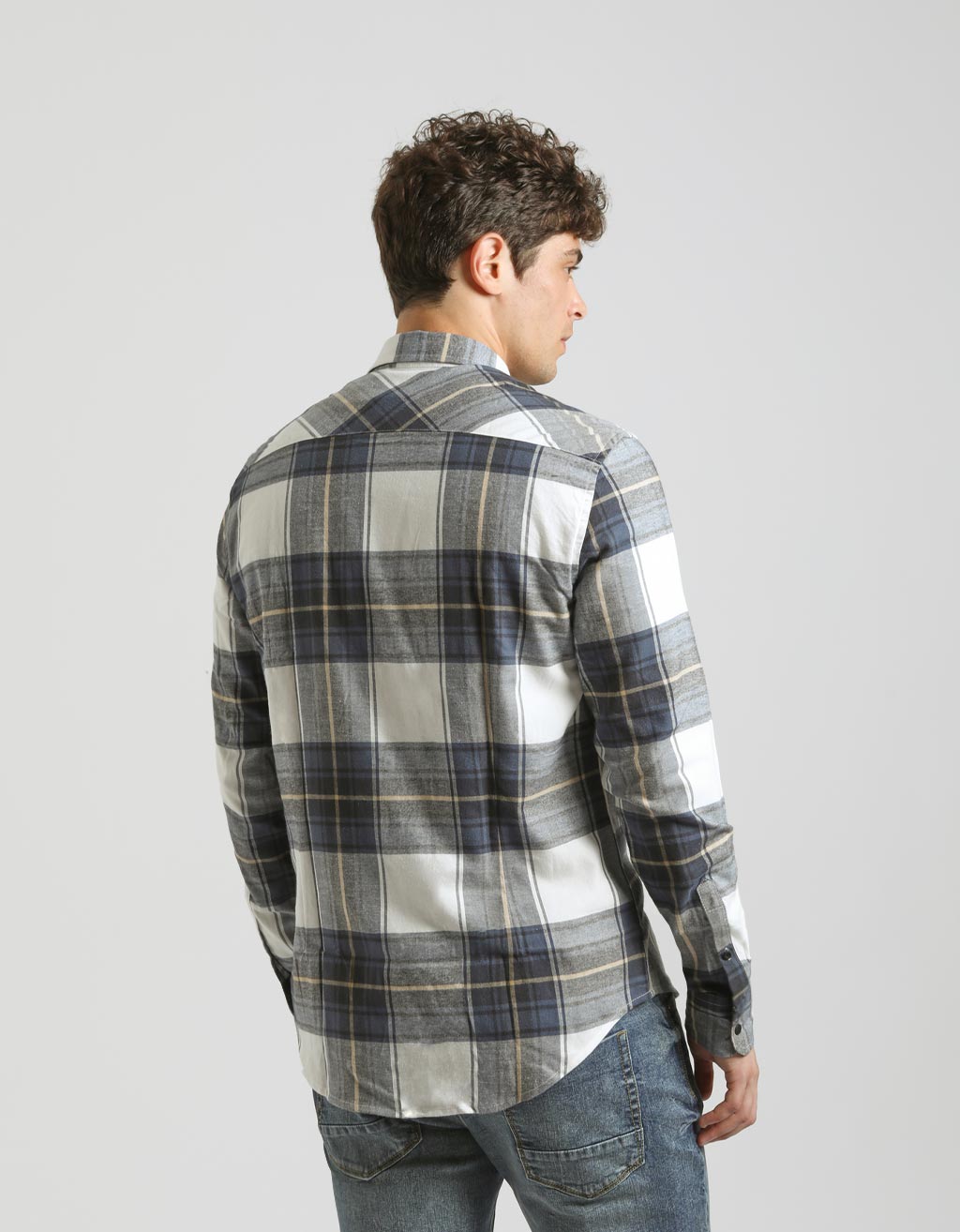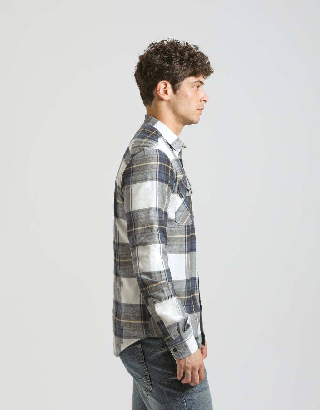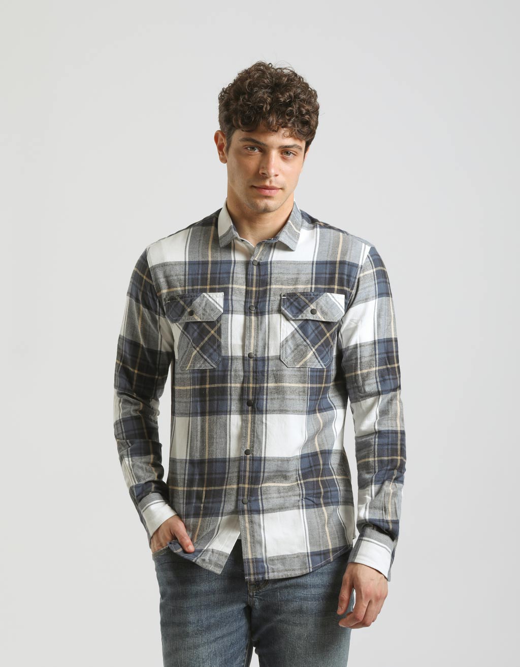 MODEL HEIGHT 185cm - SIZE L Long sleeved checked shirt 100% cotton with buttoned placket and reverse...