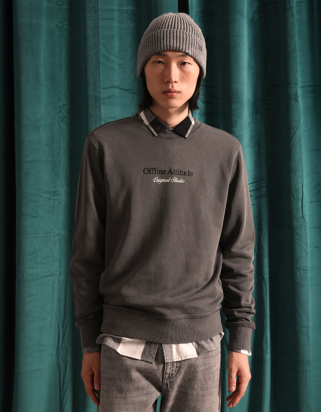 MODEL HEIGHT 185cm - SIZE L 100% cotton crewneck sweatshirt with washed-out effect and lettering on chest.