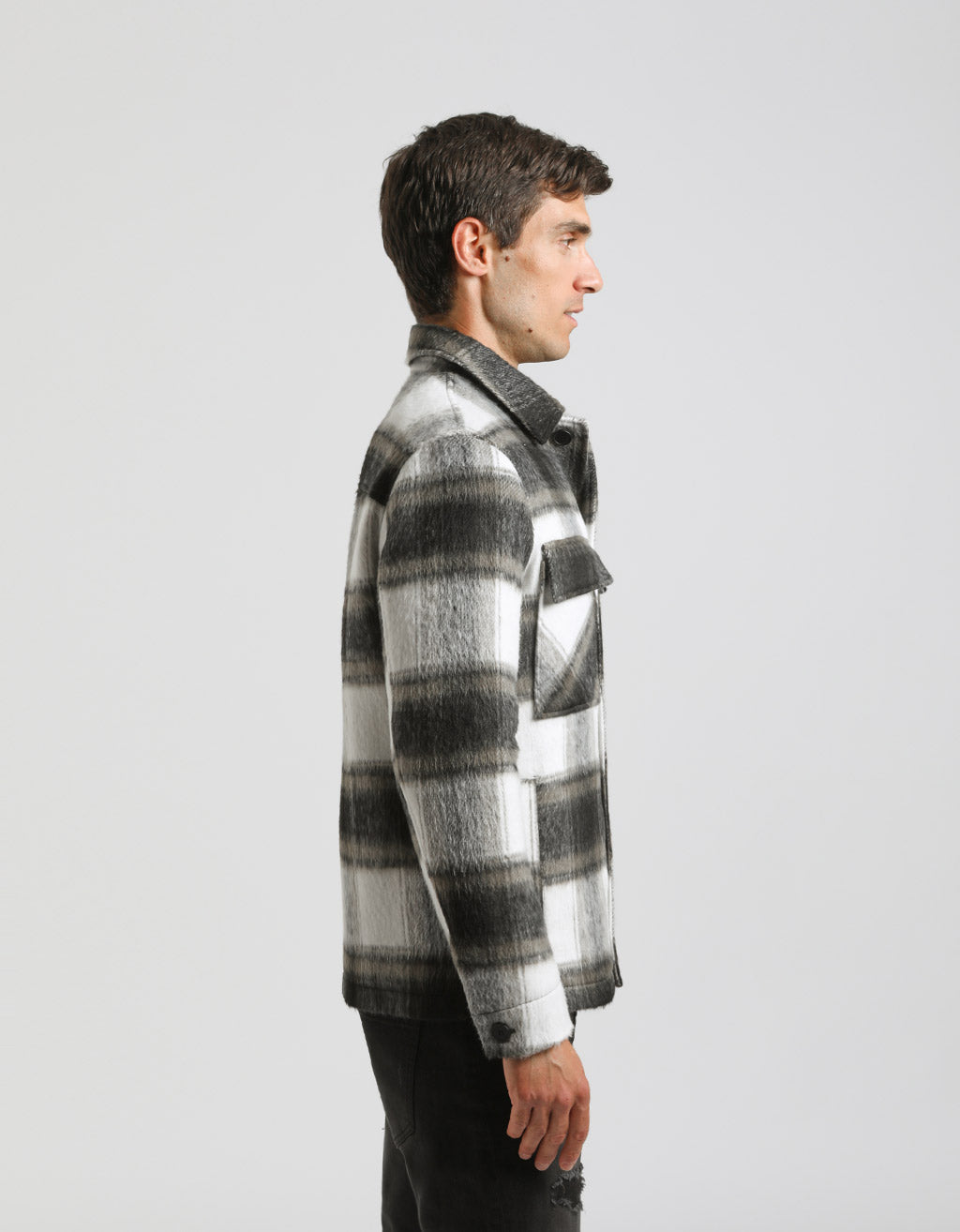 MODEL HEIGHT 185cm - SIZE L Plaid shirt jacket. Button closure and large chest pockets.