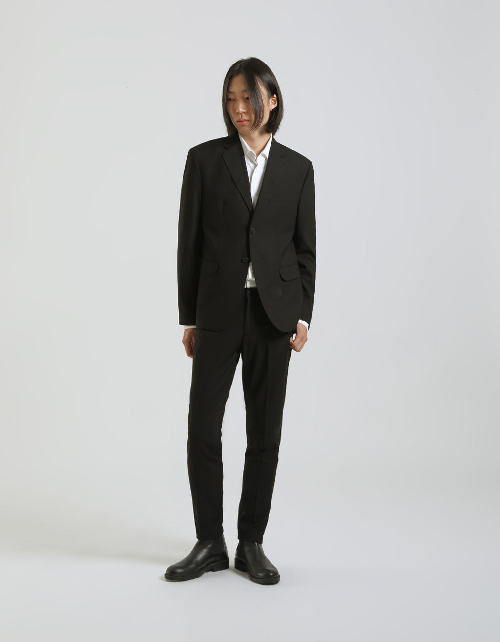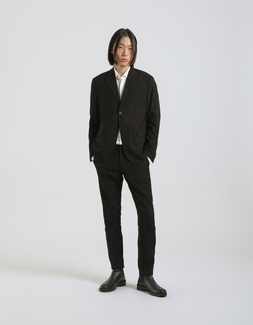 MODEL HEIGHT 185cm - SIZE 52 Plain-coloured suit with two-button fastening, flap pockets and welt breast pocket....