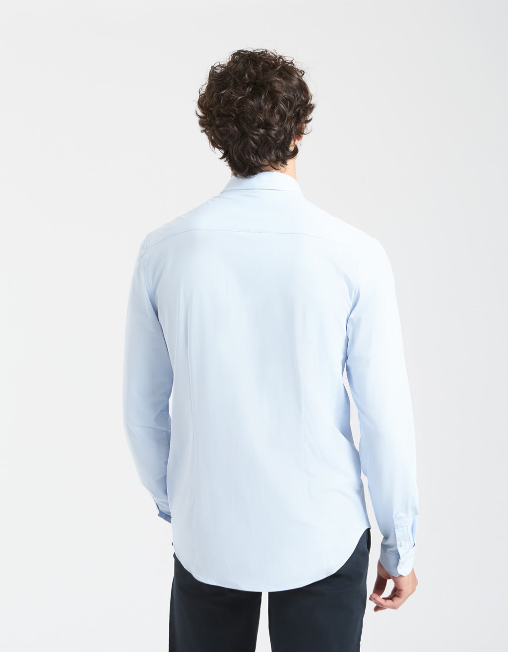 MODEL HEIGHT 185cm - SIZE L Solid-color shirt in stretch fabric with classic collar and long sleeves....
