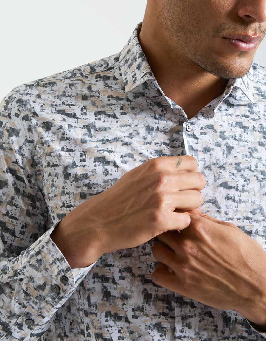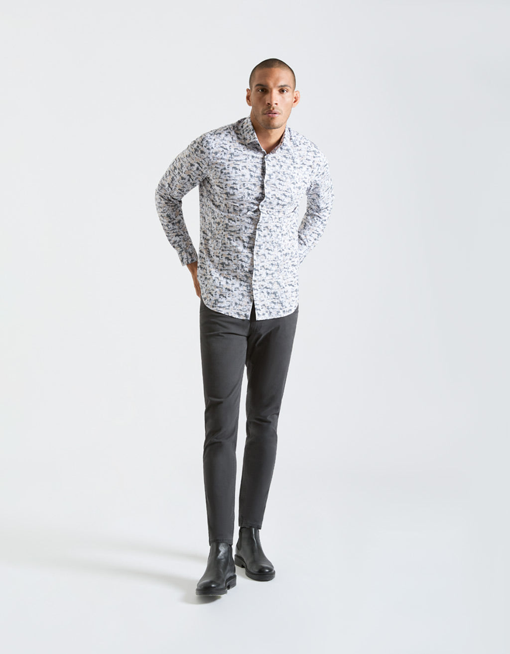 MODEL HEIGHT 185cm - SIZE L Patterned shirt easy care with classic collar and long sleeves. Button...