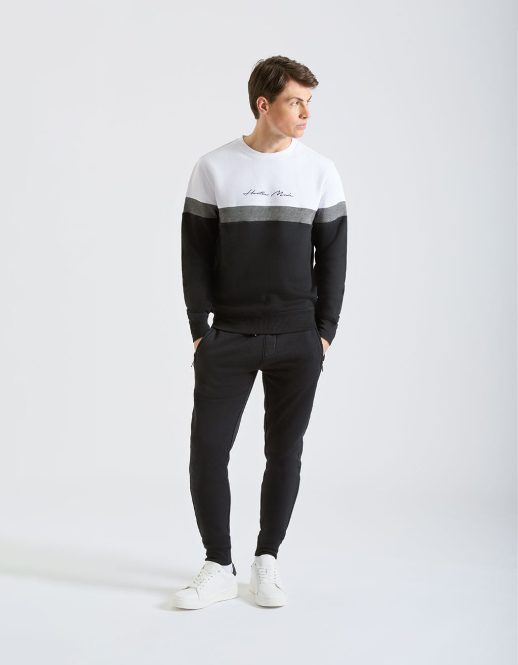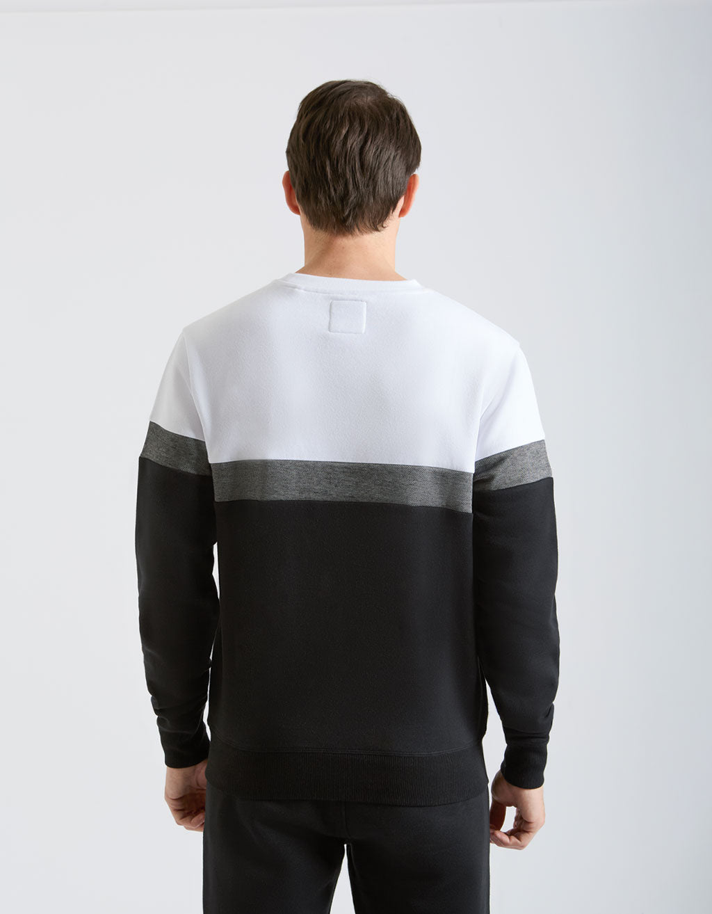MODEL HEIGHT 185cm - SIZE L Colorblock Crew neck sweater.