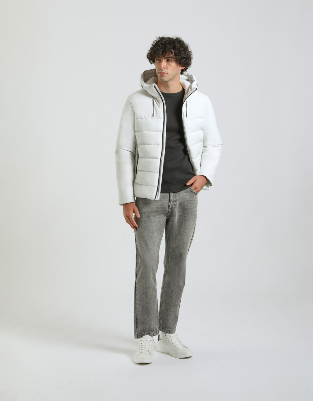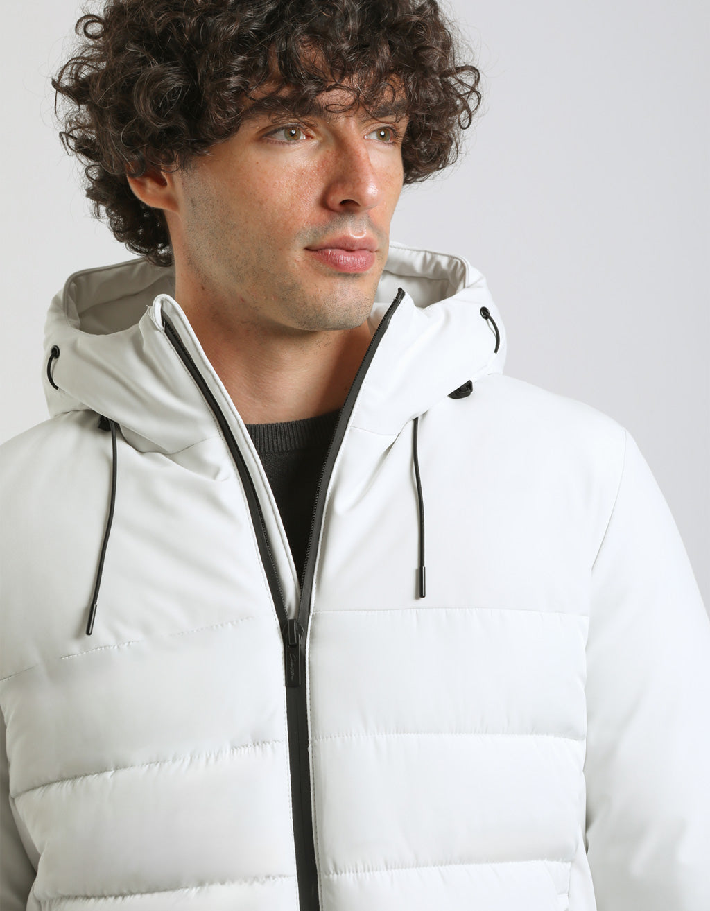 MODEL HEIGHT 185cm - SIZE L Padded jacket comined with hood. Front zipper closure and zippered side...