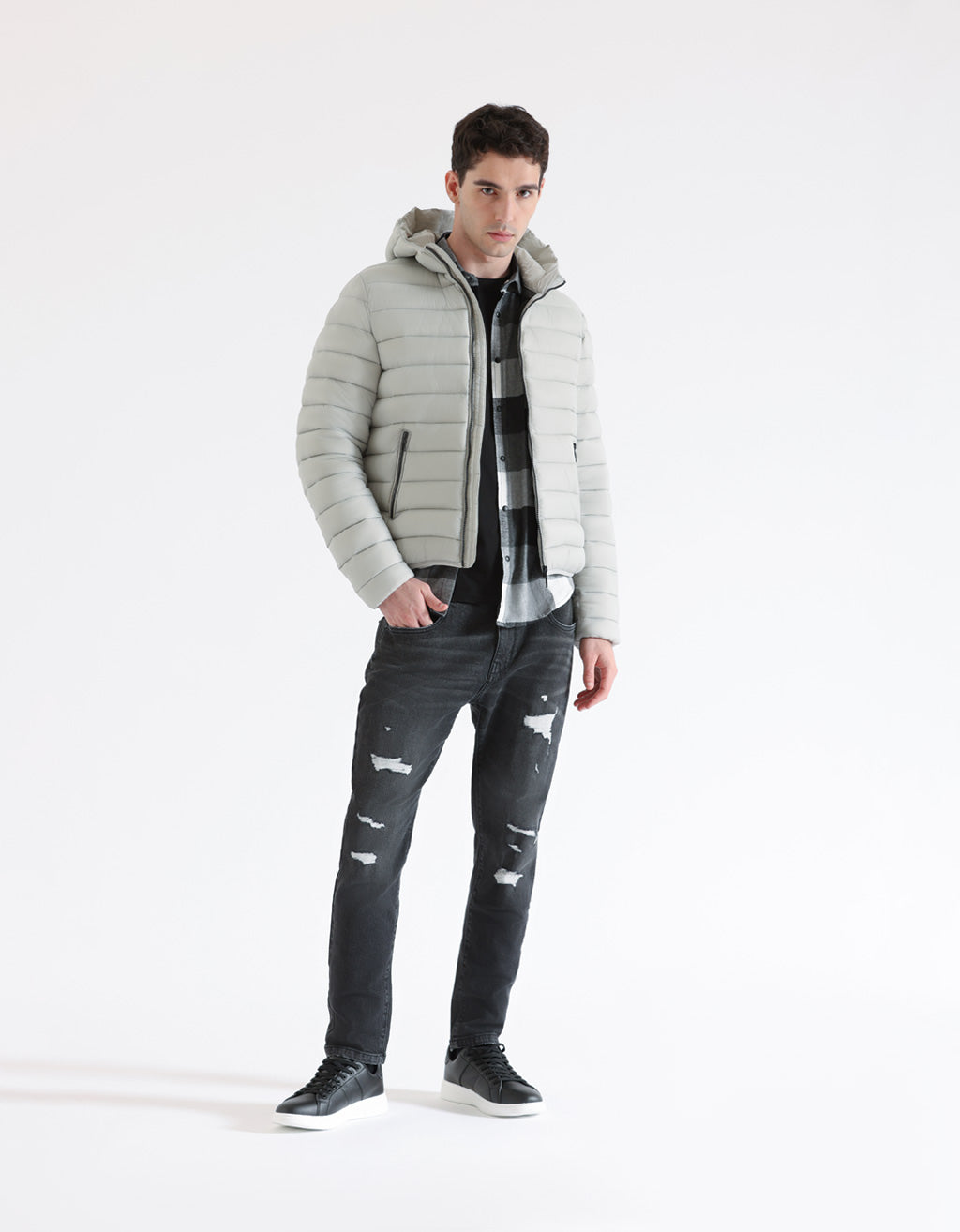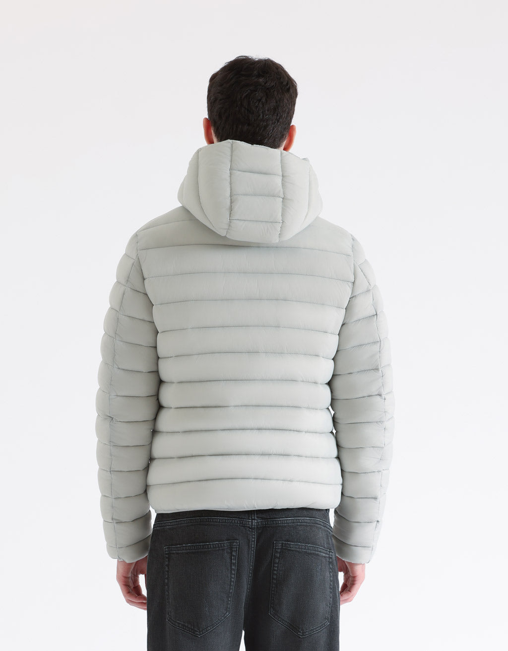 MODEL HEIGHT 185cm - SIZE L 100gr nylon padded jacket with hood. Front zipper closure and zippered...