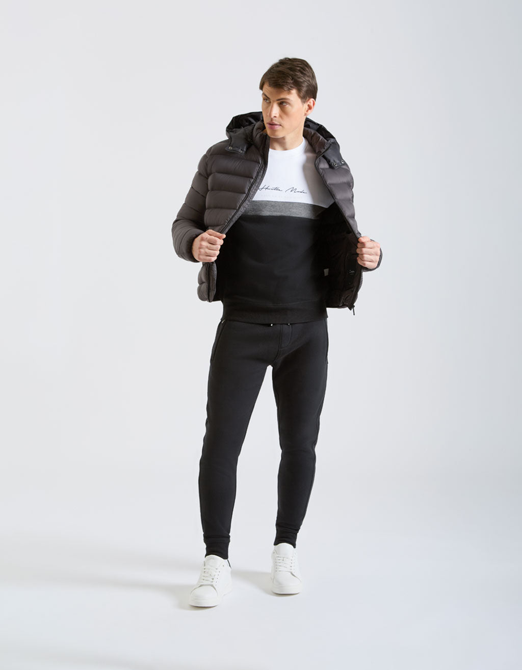 MODEL HEIGHT 185cm - SIZE L 100gr nylon padded jacket with hood. Front zipper closure and zippered...