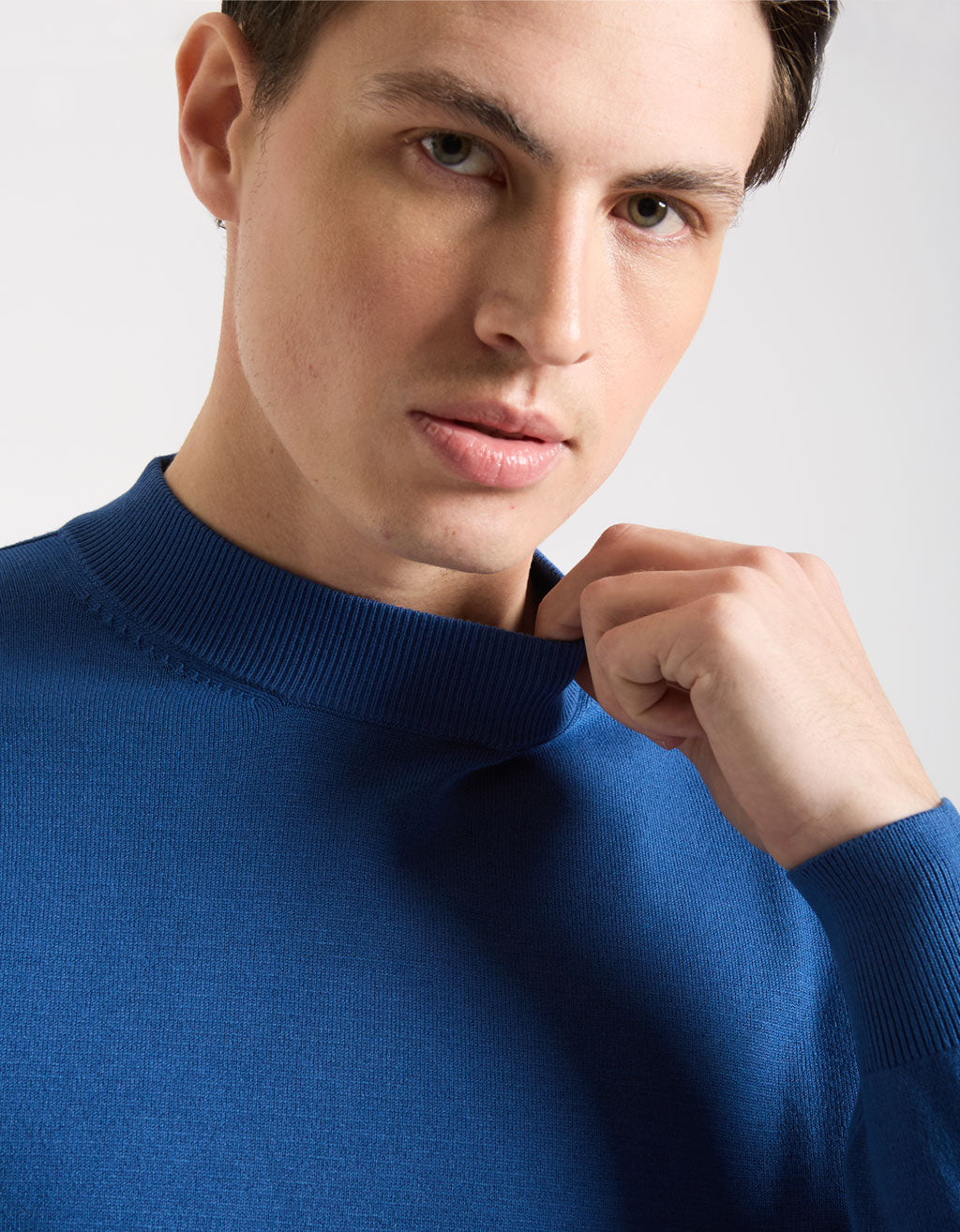 MODEL HEIGHT 185cm - SIZE L. Plain viscose turtleneck sweater.