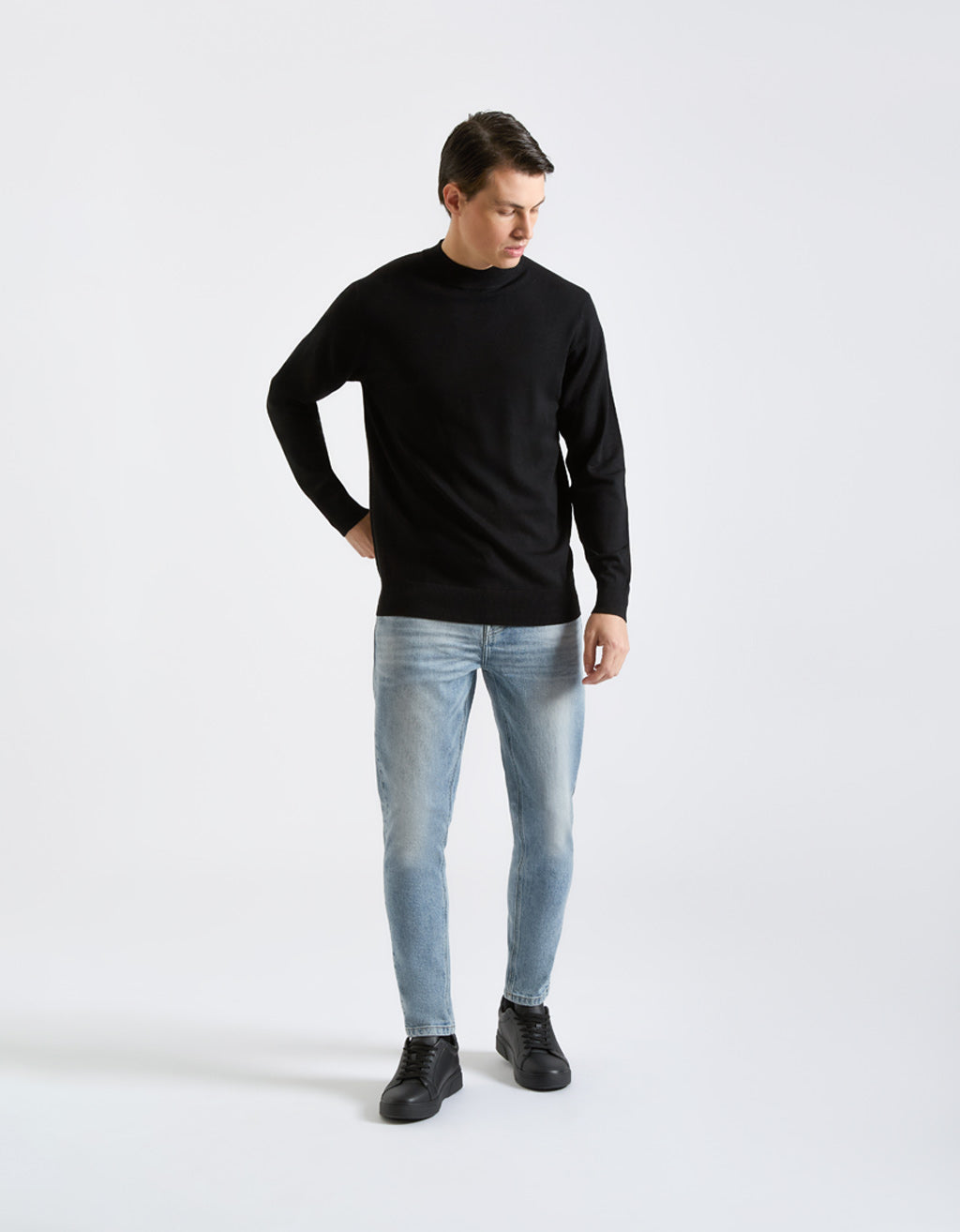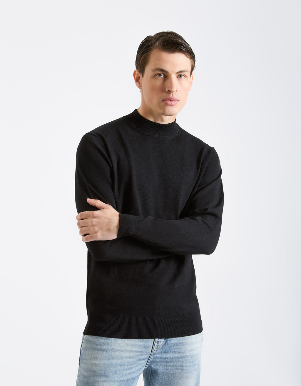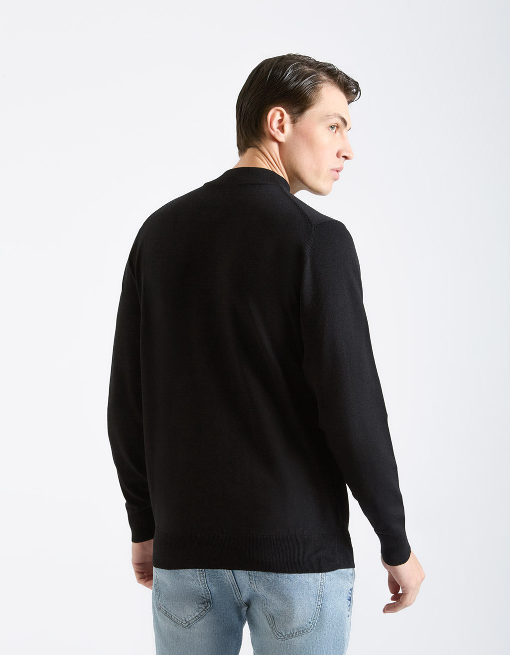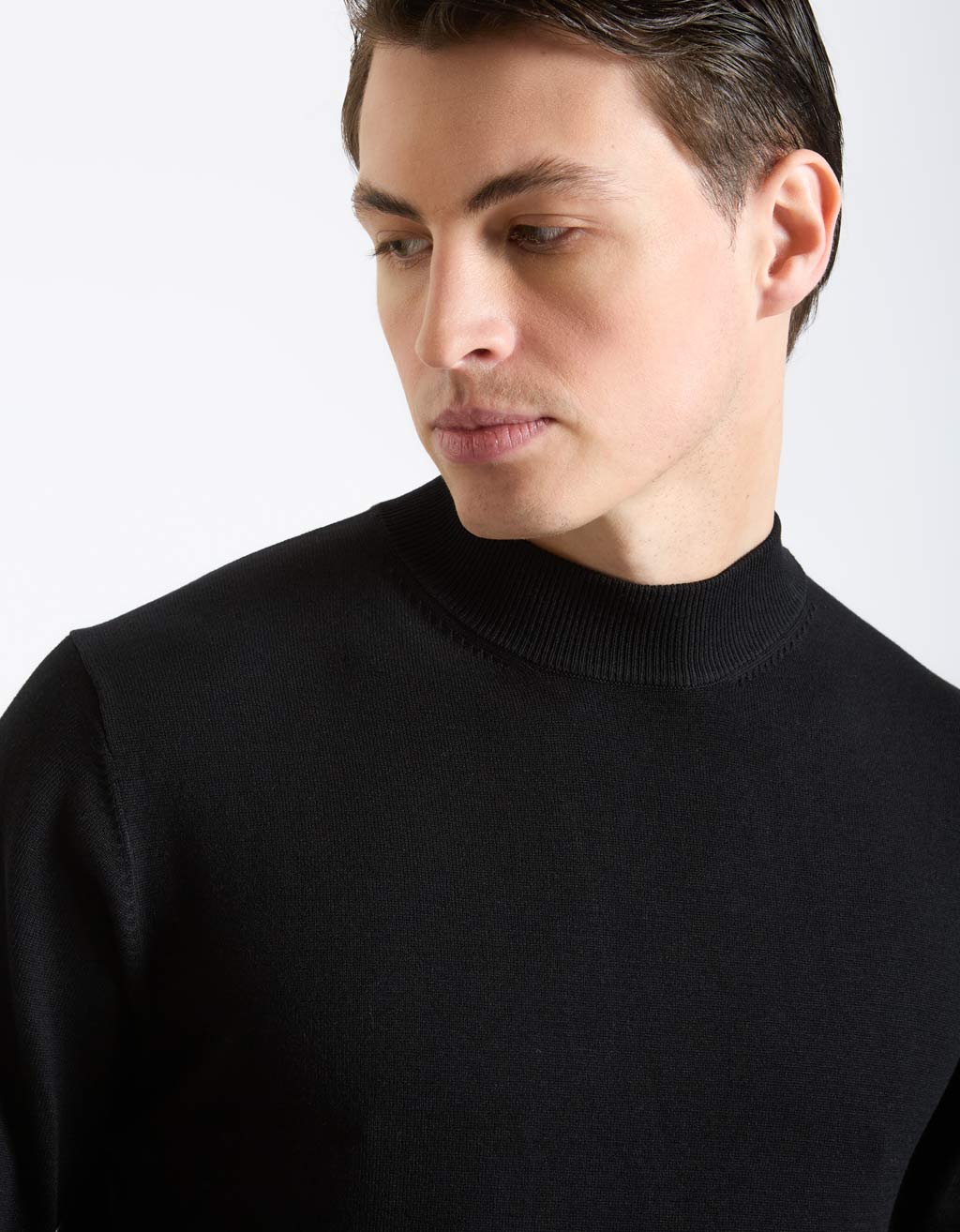 MODEL HEIGHT 185cm - SIZE L. Plain viscose turtleneck sweater.