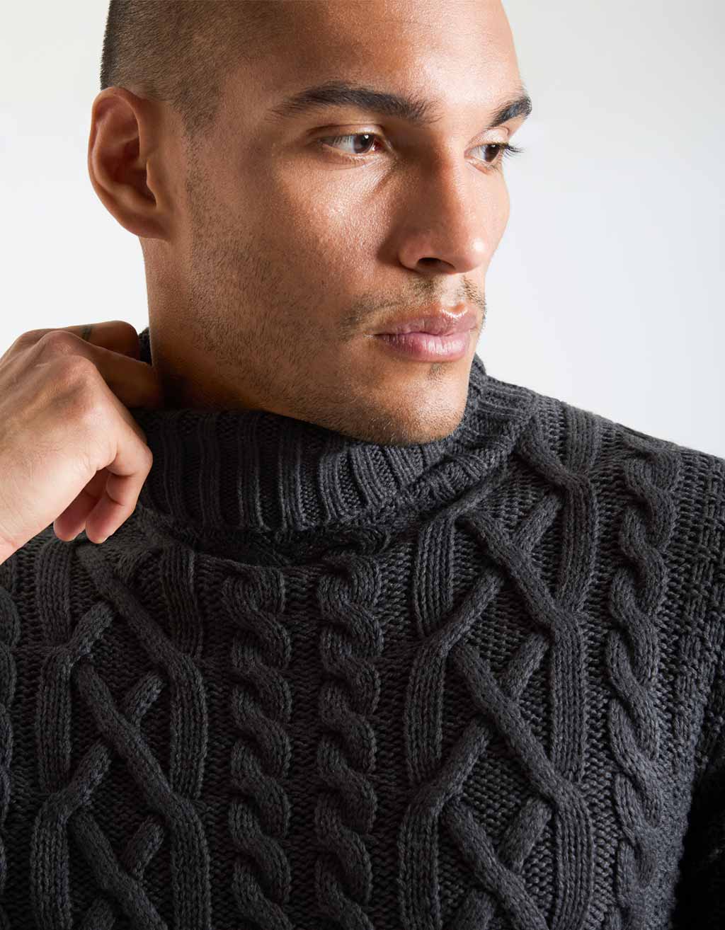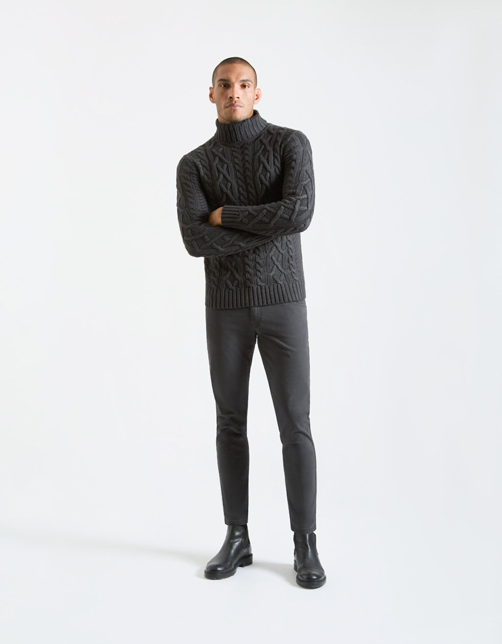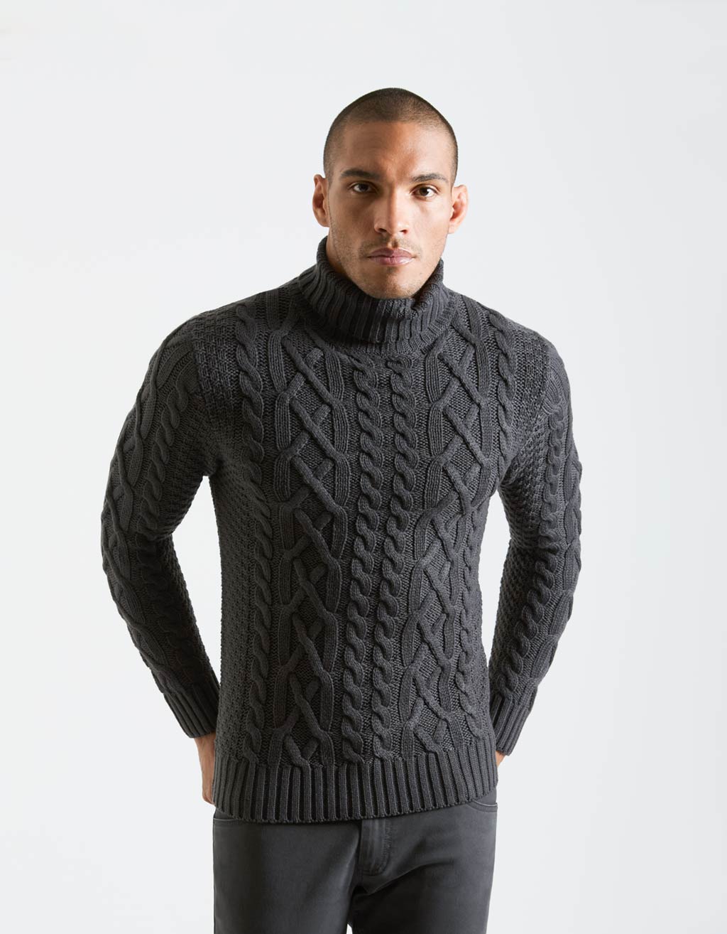 MODEL HEIGHT 185cm - SIZE L Turtleneck sweater with woven weave. Solid color and long sleeve.
