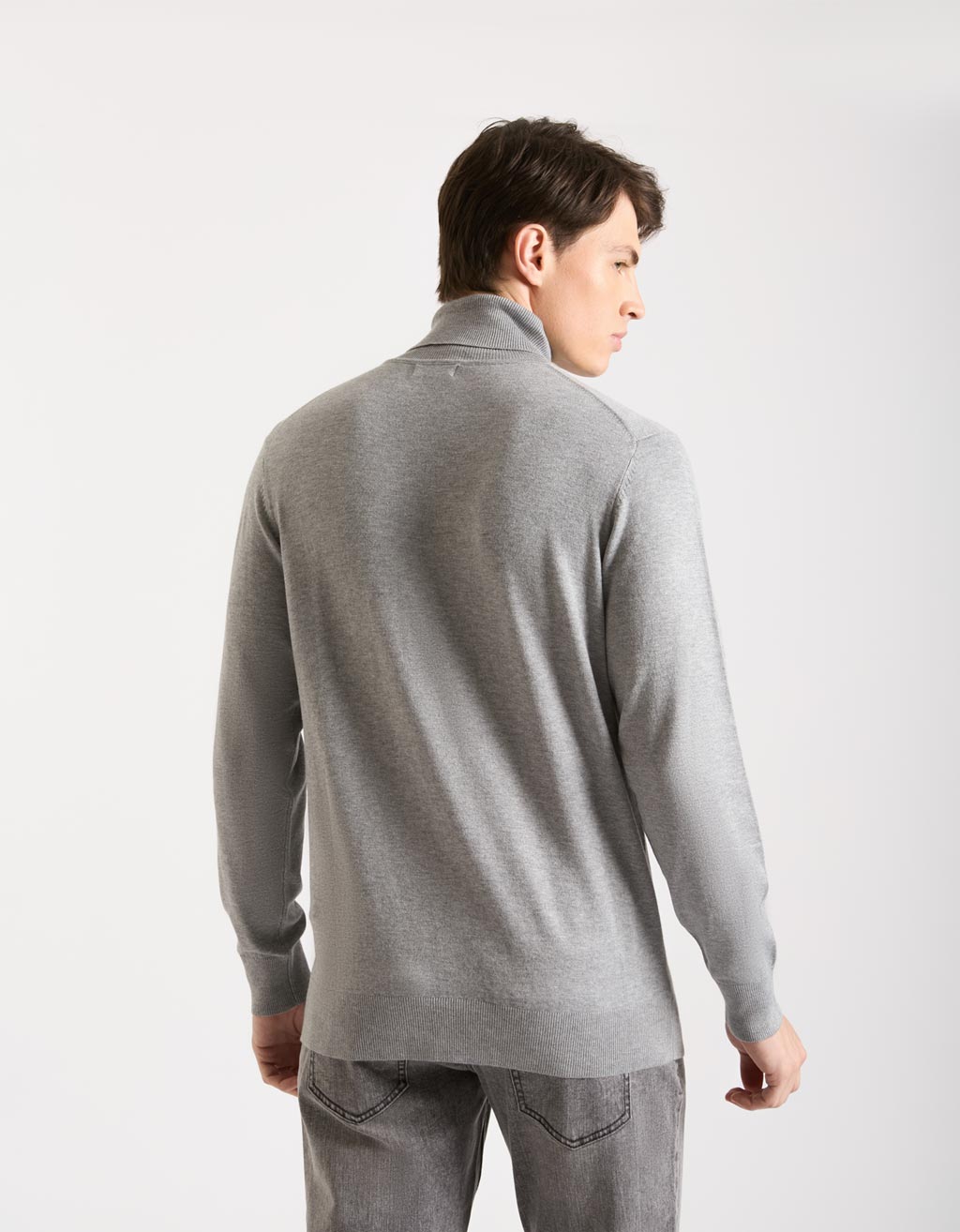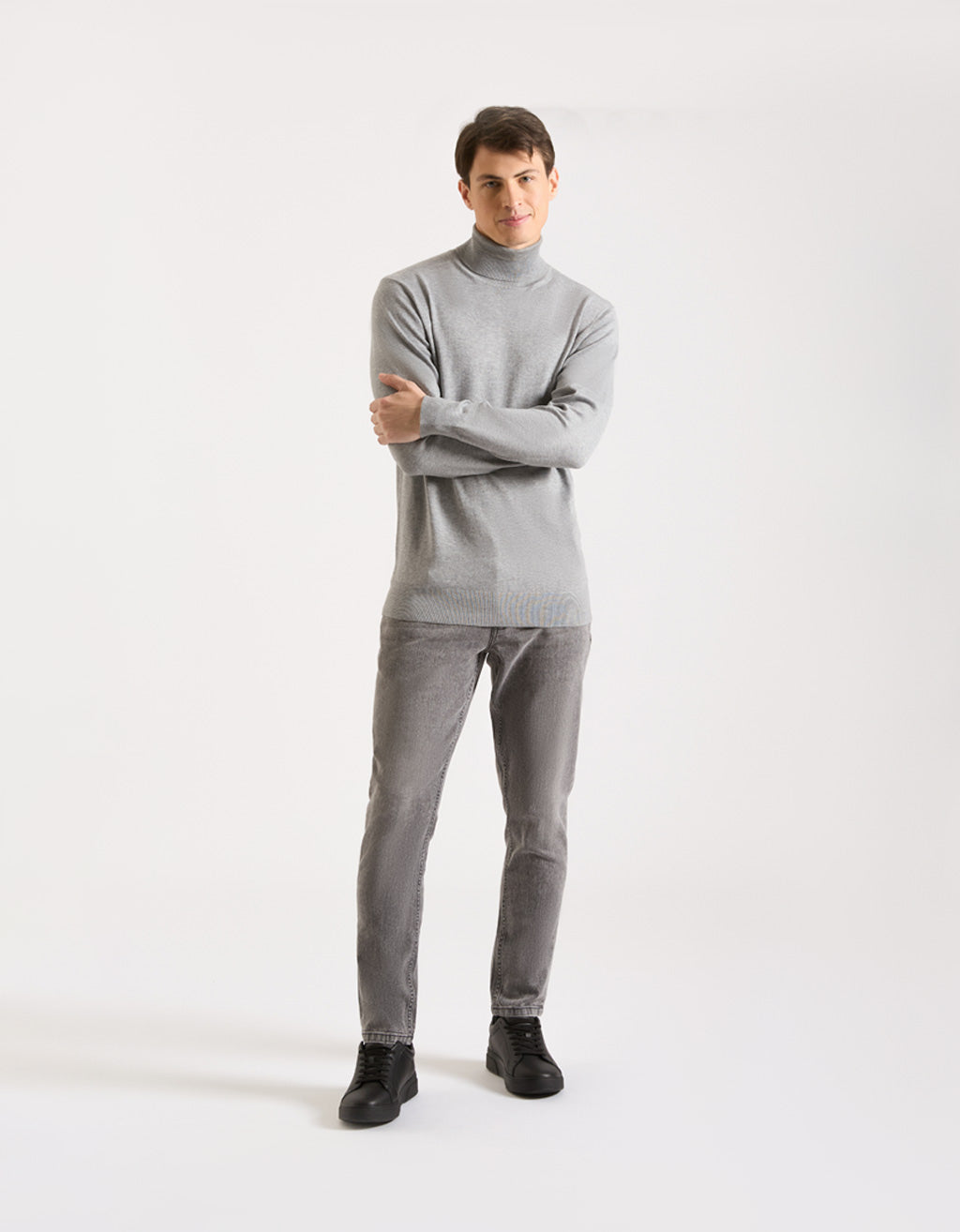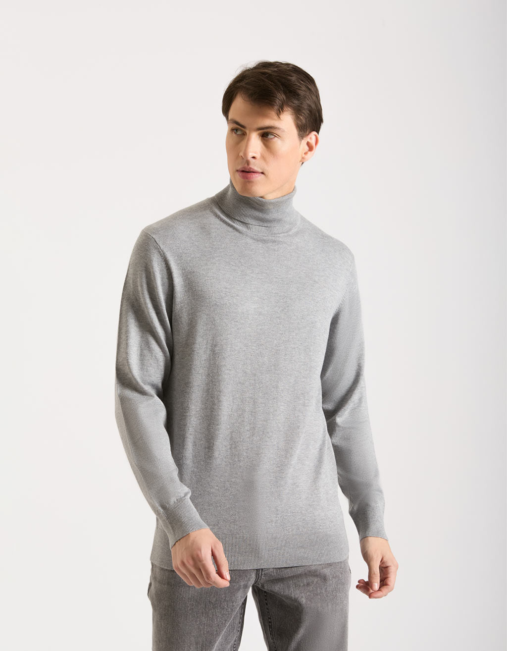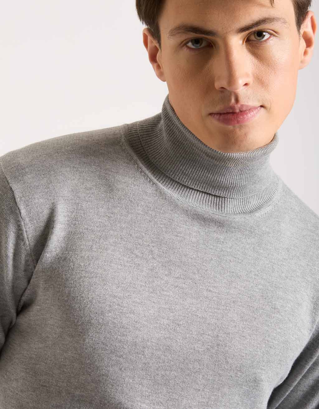 MODEL HEIGHT 185cm - SIZE L Long-sleeve plain viscose turtleneck pullover.