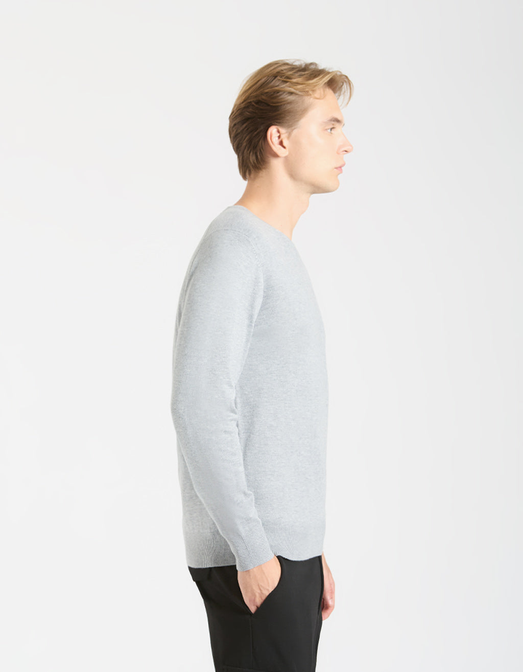 MODEL HEIGHT 185cm - SIZE L Basic viscose sweater with V-neck. Solid color and long sleeve.