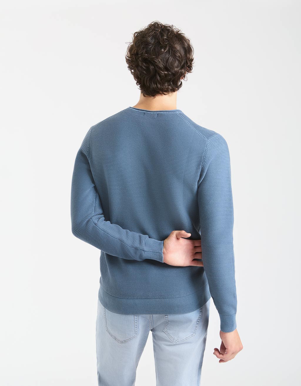 MODEL HEIGHT 185cm - SIZE L Textured cotton crew neck roll sweater with wash. Solid color and...