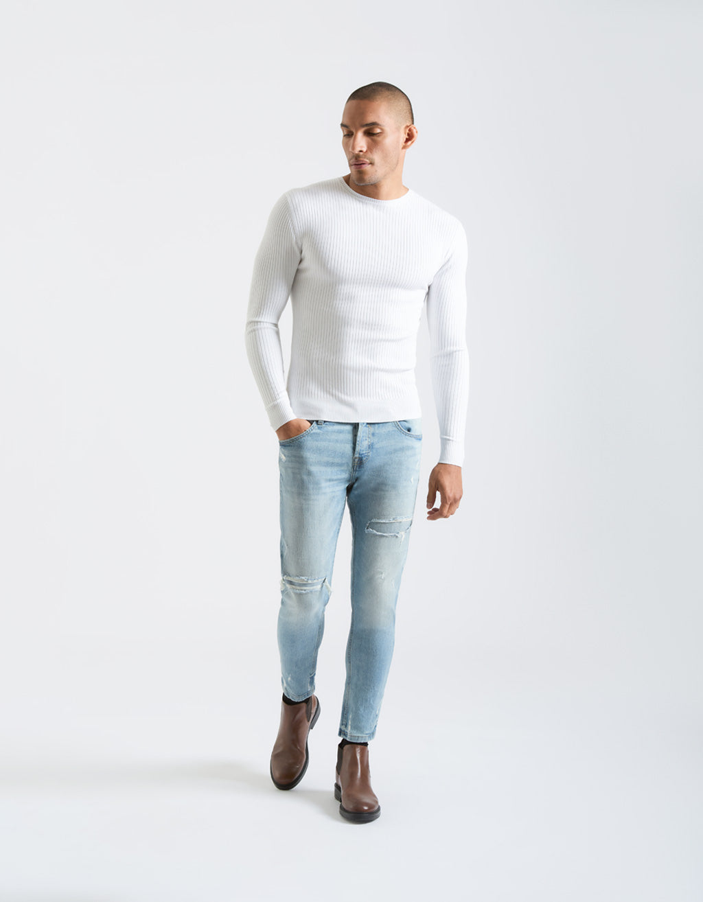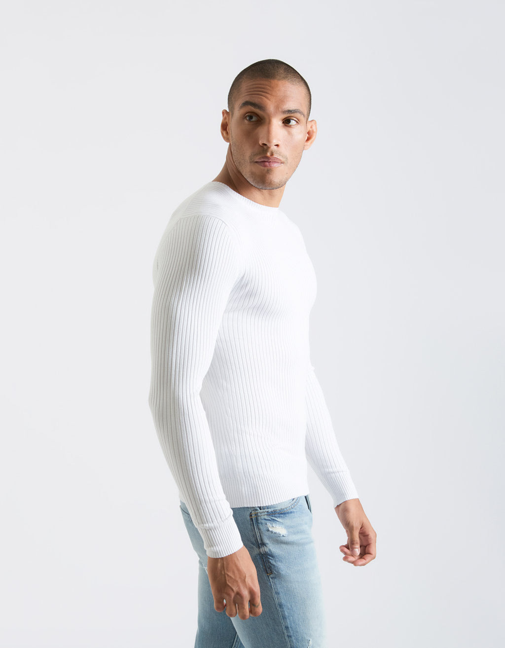MODEL HEIGHT 185cm - SIZE L Crew-neck sweater with ribbed viscose knitting. Solid color and long sleeve.