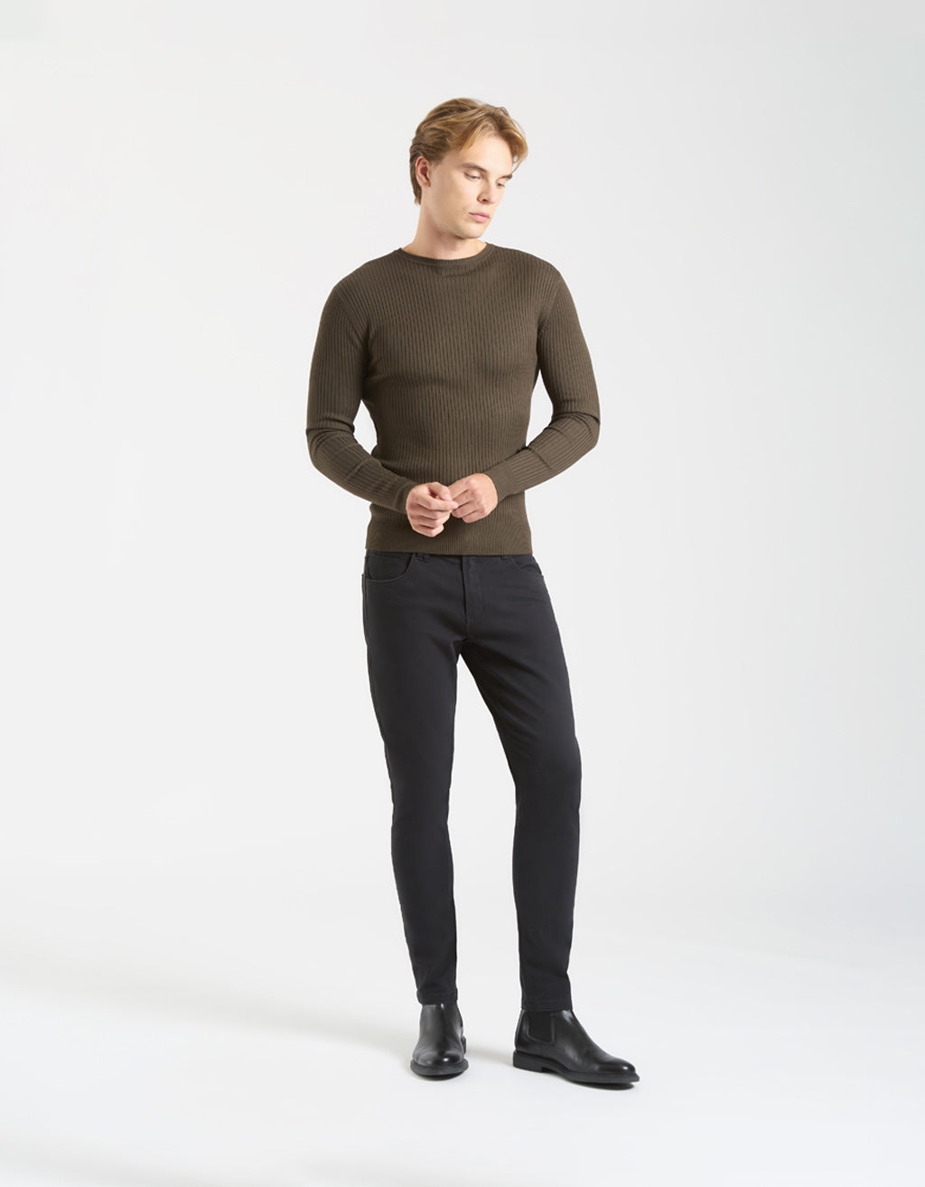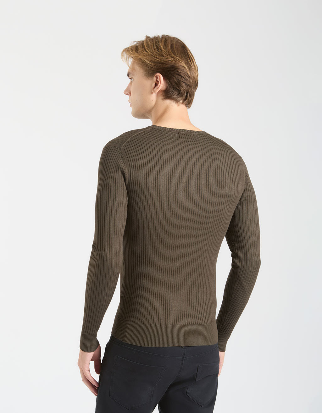 MODEL HEIGHT 185cm - SIZE L Crew-neck sweater with ribbed viscose knitting. Solid color and long sleeve.
