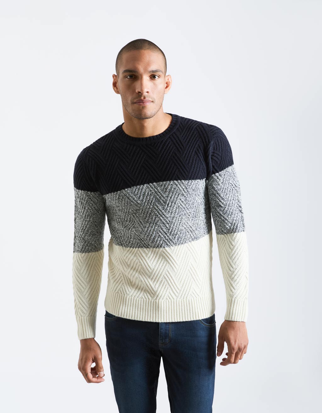 Colorblock textured jumper with long sleeve and ribbed trims.