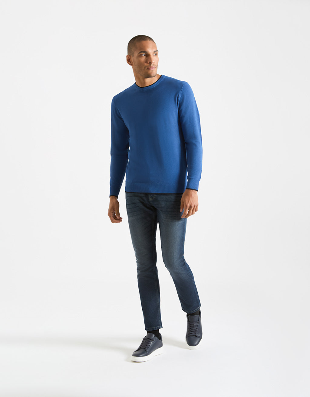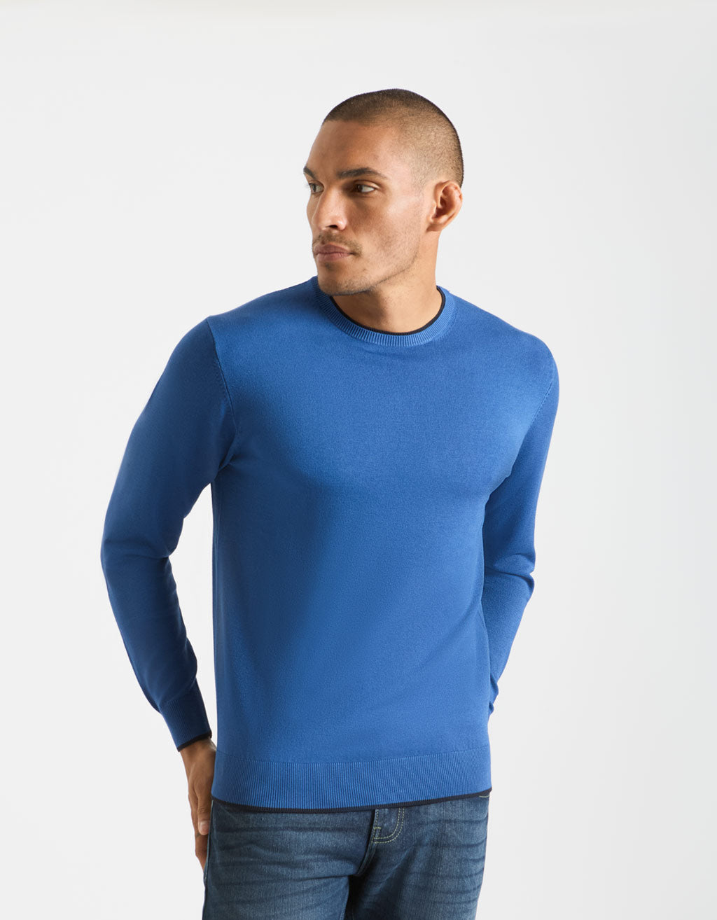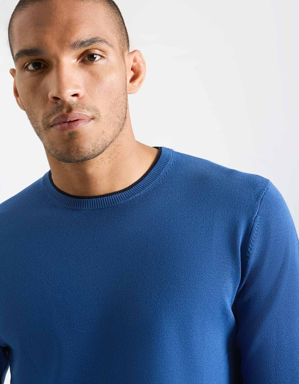 MODEL HEIGHT 185cm - SIZE L Crew-neck sweater with double viscose collar. Solid color and long sleeve.