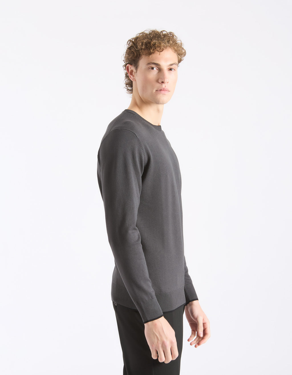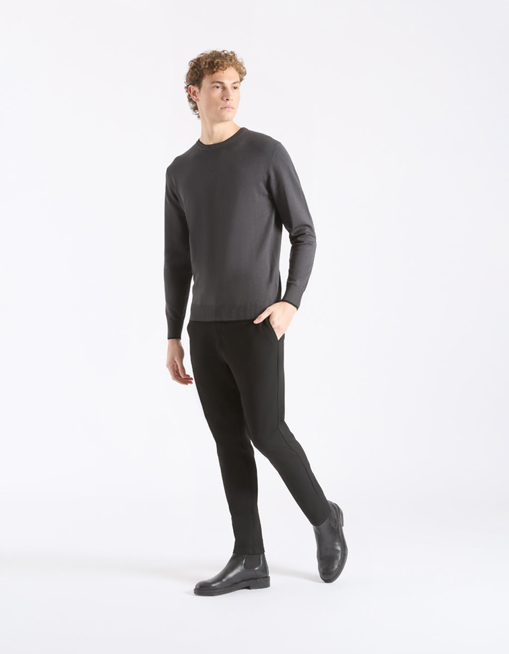 MODEL HEIGHT 185cm - SIZE L Crew-neck sweater with double viscose collar. Solid color and long sleeve.