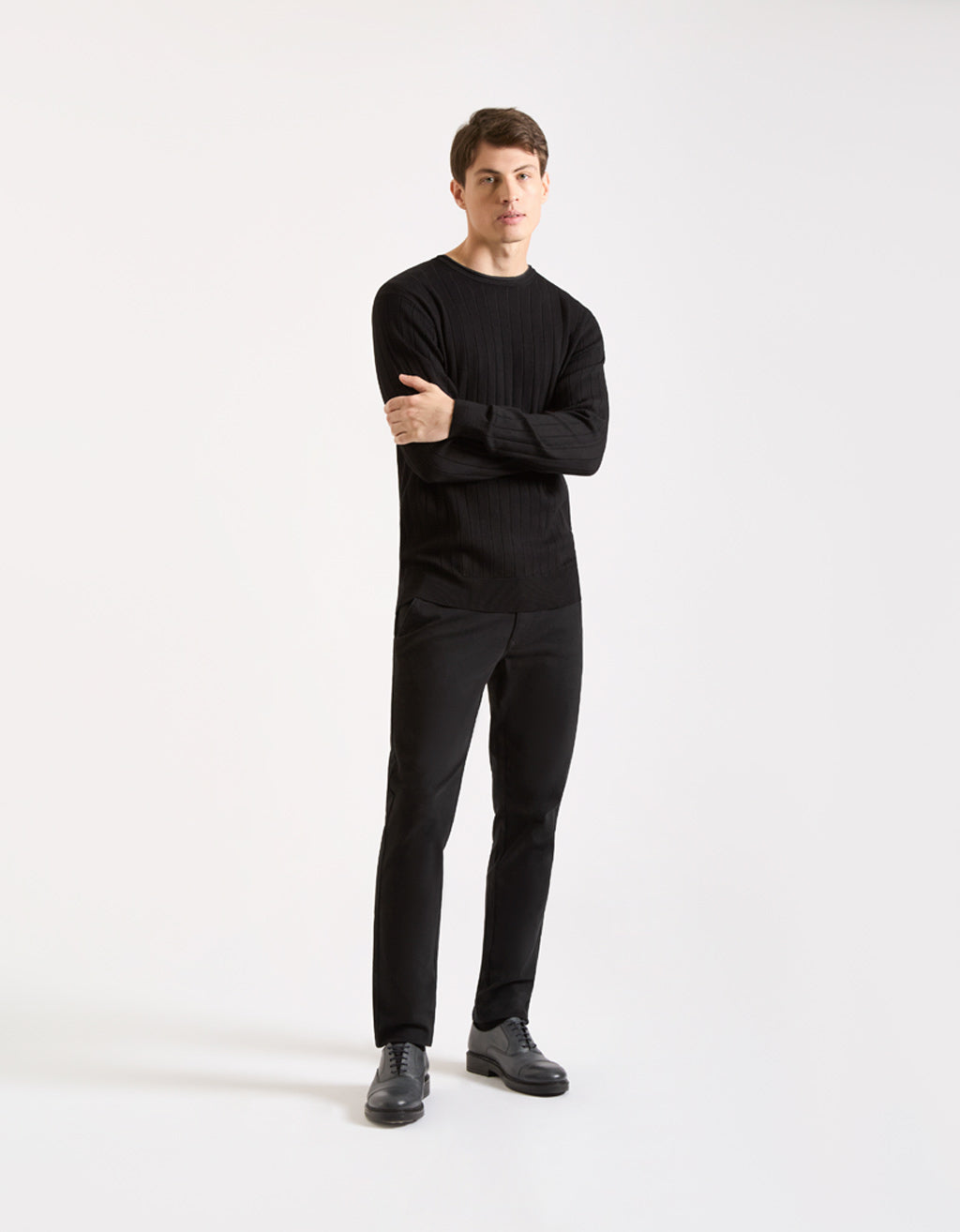 MODEL HEIGHT 185cm - SIZE L Crew-neck sweater with double viscose roll neck. Solid color and long...