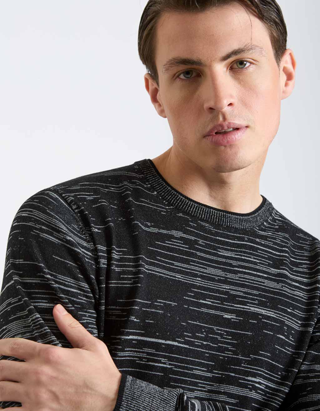 MODEL HEIGHT 185cm - SIZE L Crew-neck sweater with double viscose collar. Solid color and long sleeve.