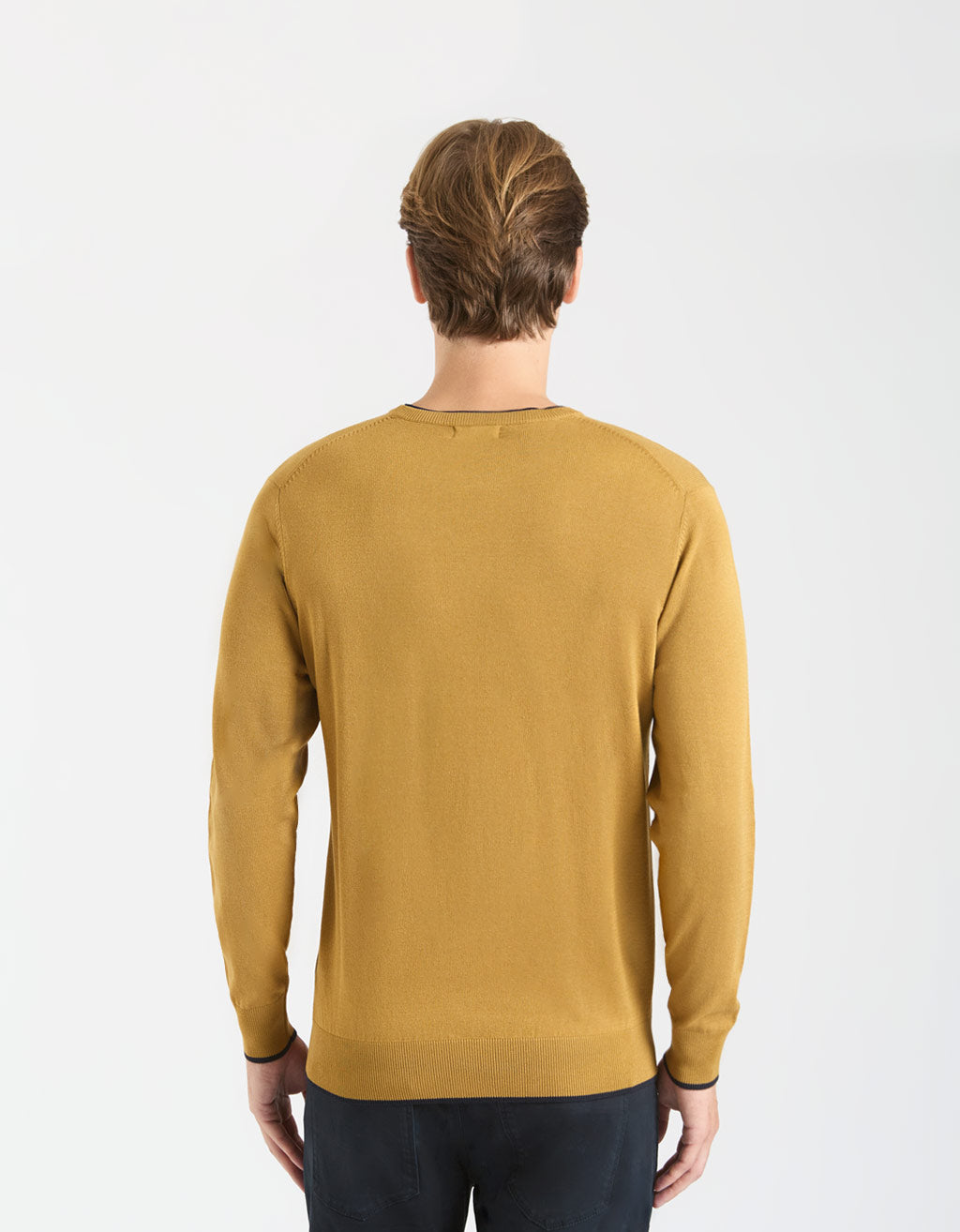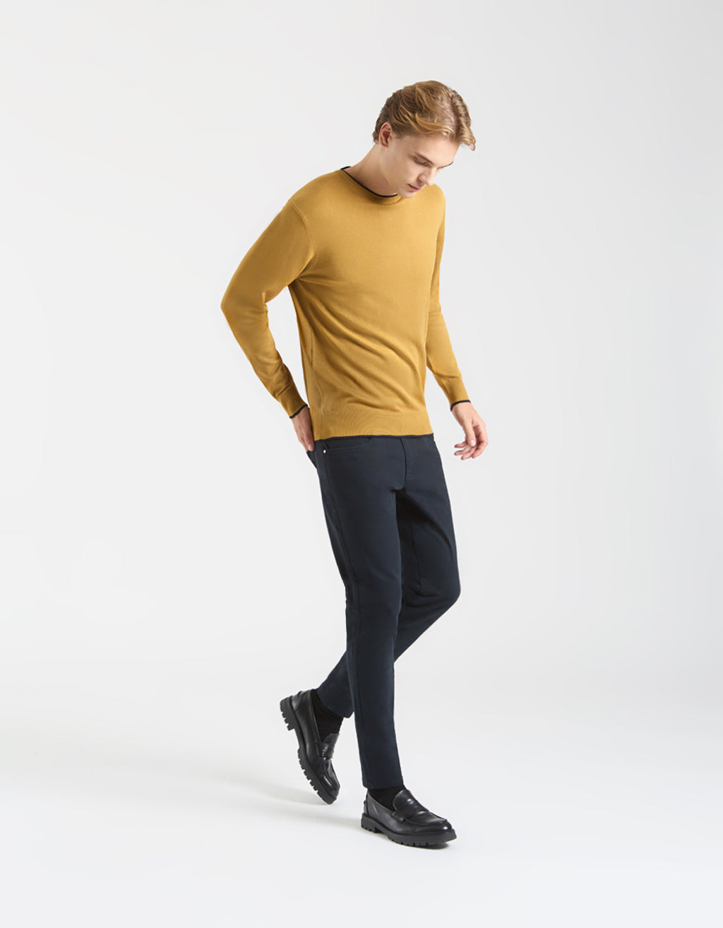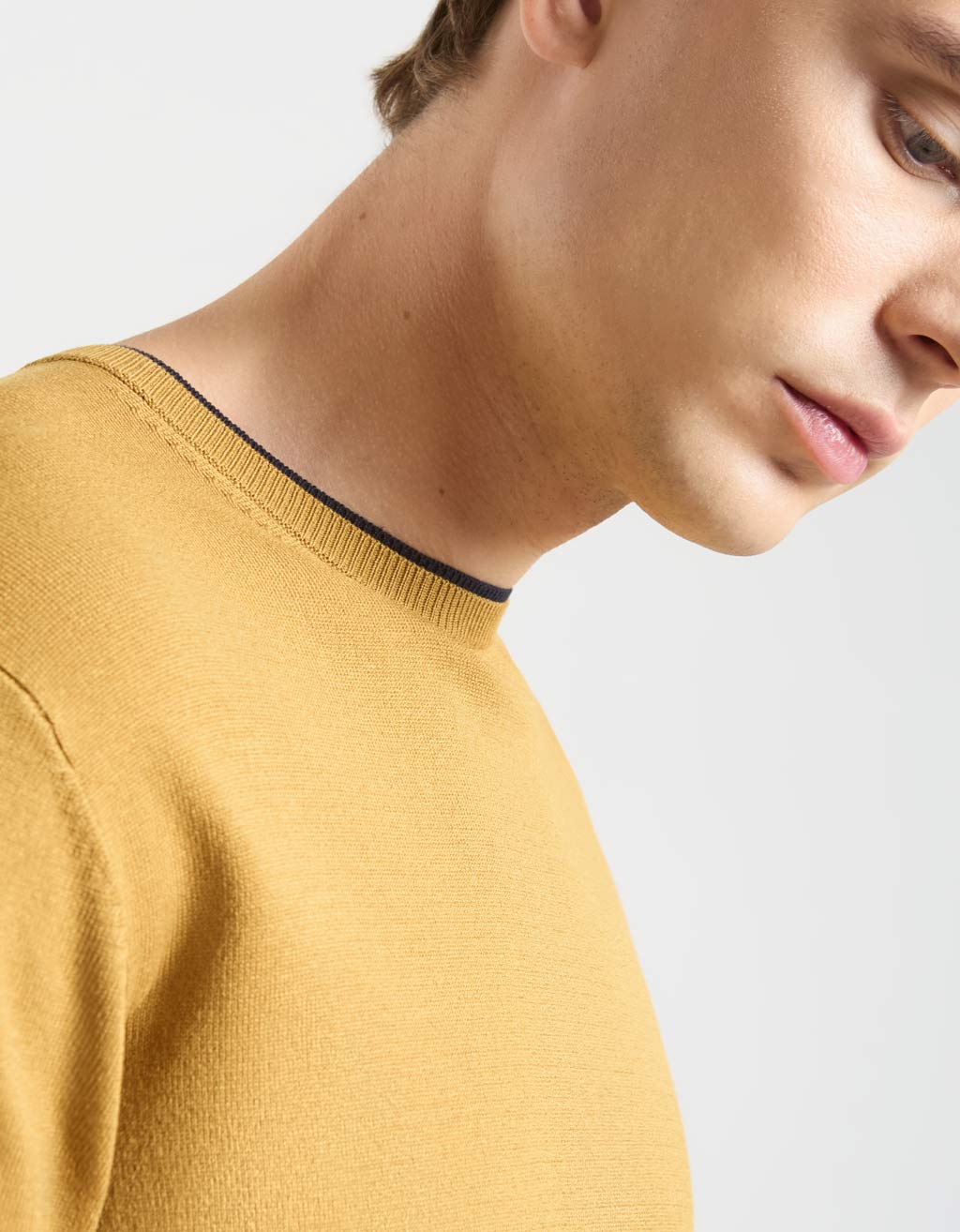 MODEL HEIGHT 185cm - SIZE L Crew-neck sweater with double viscose collar. Solid color and long sleeve.