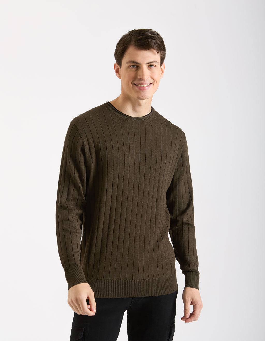 MODEL HEIGHT 185cm - SIZE L Crew-neck sweater with double viscose roll neck. Solid color and long...