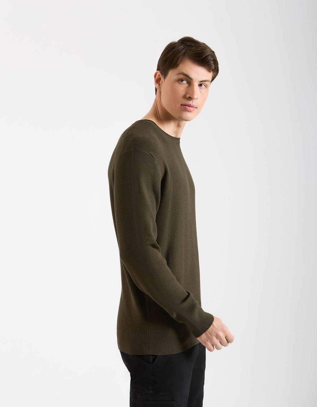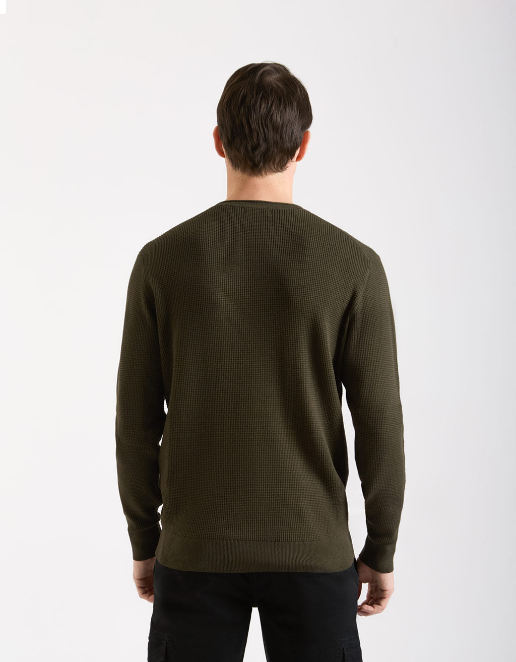 MODEL HEIGHT 185cm - SIZE L Viscose crew-neck sweater with roll neck with long sleeves and solid...