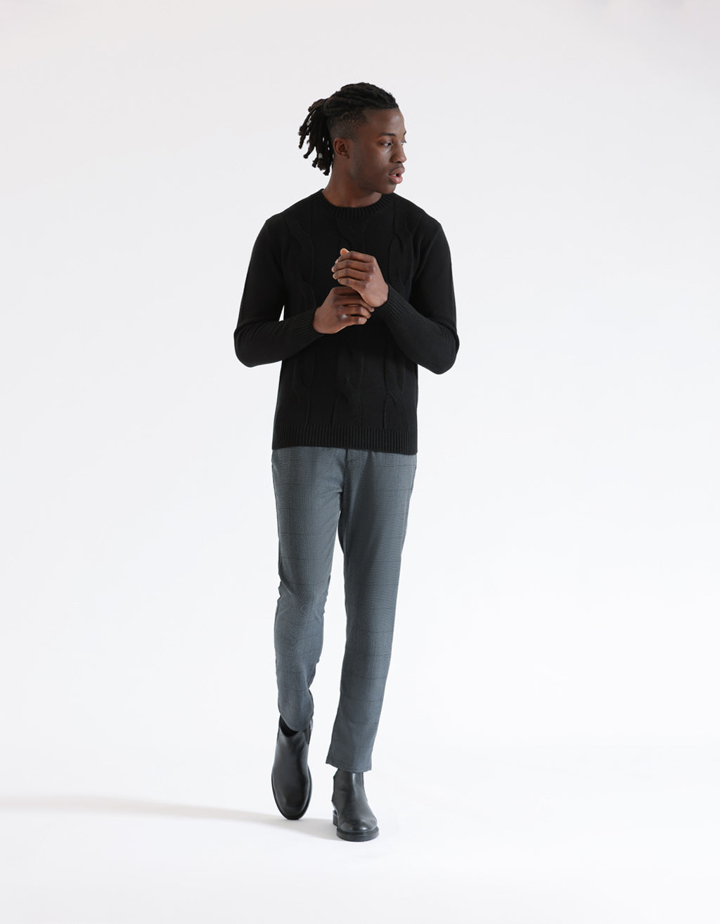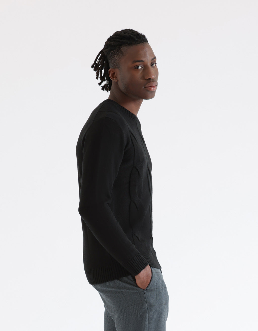 Braided crew neck sweater