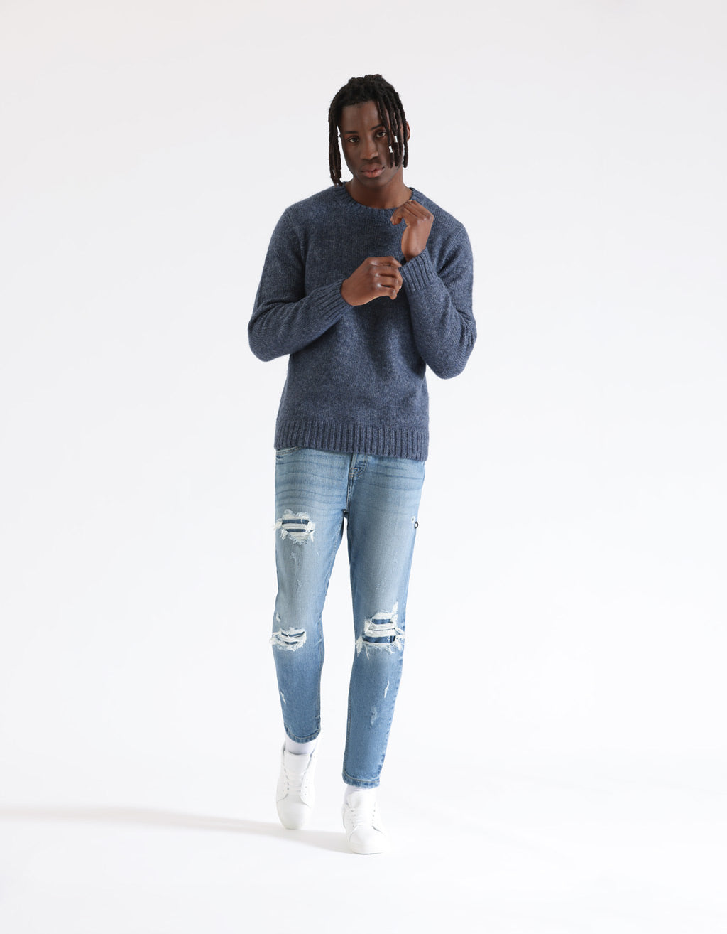 MODEL HEIGHT 185cm - SIZE L Long sleeve crew neck wool blend sweater.