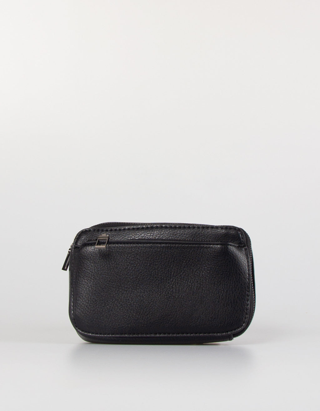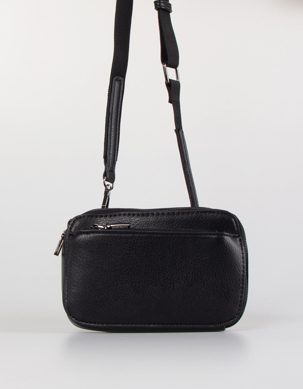 Borsa tracolla effetto pelle con chiusura zip e ganci sul retro. Tasca frontale con zip.