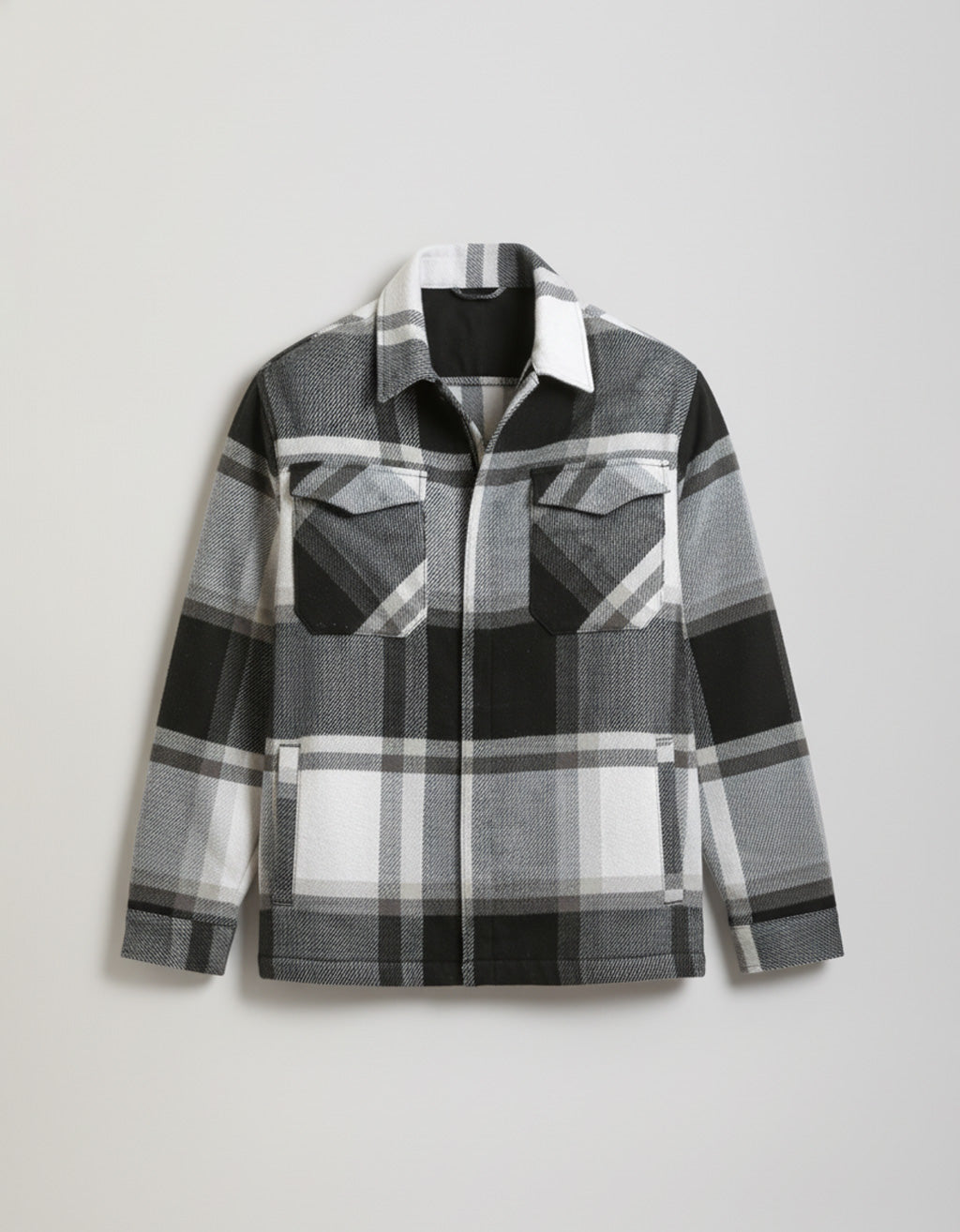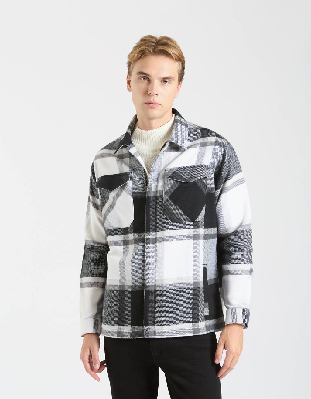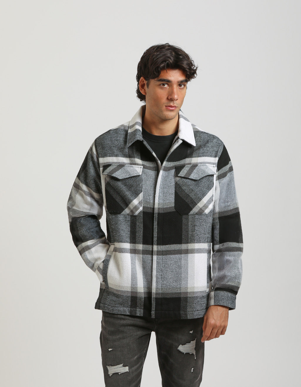 Camicia a quadri overshirt con maniche lunghe, tasche sul petto e chiusura con zip. Vestibilità over.