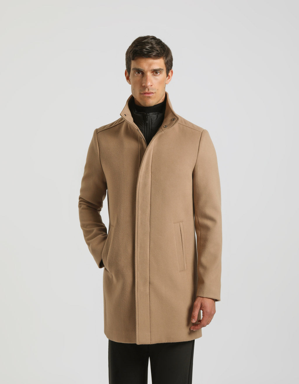 ALTEZZA MODELLO 185cm - TAGLIA L Cappotto con collo lupetto tessuto diagonale e gilet. Chiusura con bottoni e zip. Tasche a filetto laterali e taschino interno. Spacco centrale sul retro. Vestibilità regular.