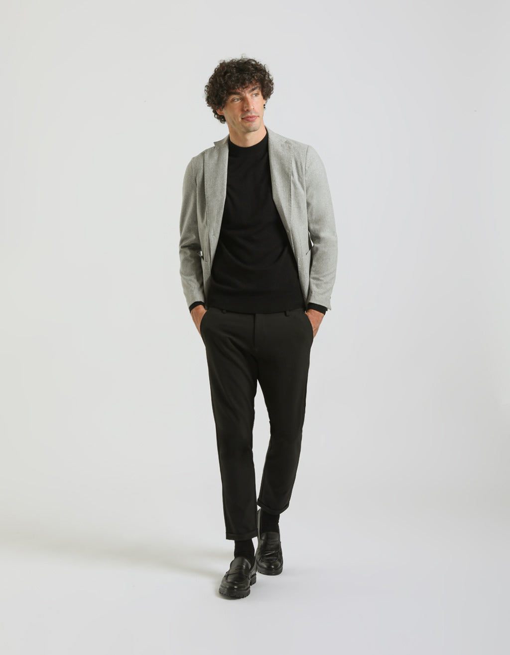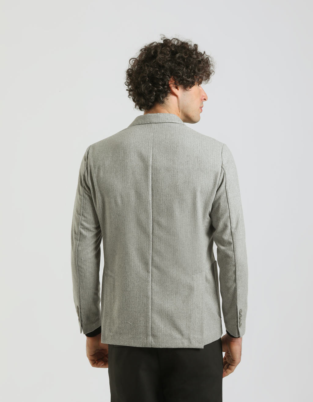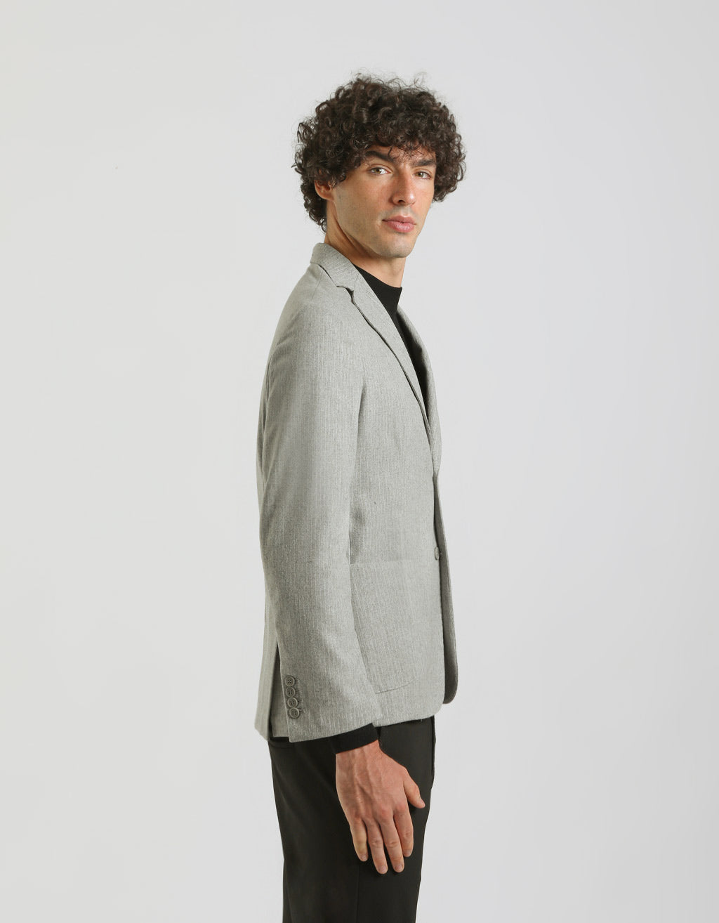 "ALTEZZA MODELLO 185cm - TAGLIA 50 Giacca in tessuto strutturato, collo reverse, chiusura e polsini con bottoni. Tasche anteriori e taschino a filetto sul petto. Due taschini interni e spacchi laterali sul retro."