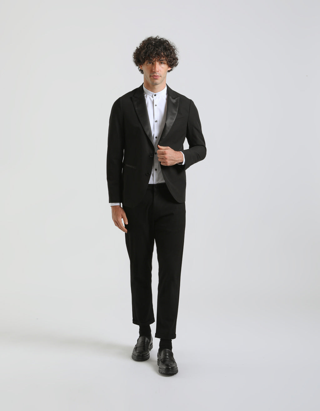 ALTEZZA MODELLO 185cm - TAGLIA L Giacca smoking con reverse a contrasto e tasche a friso.