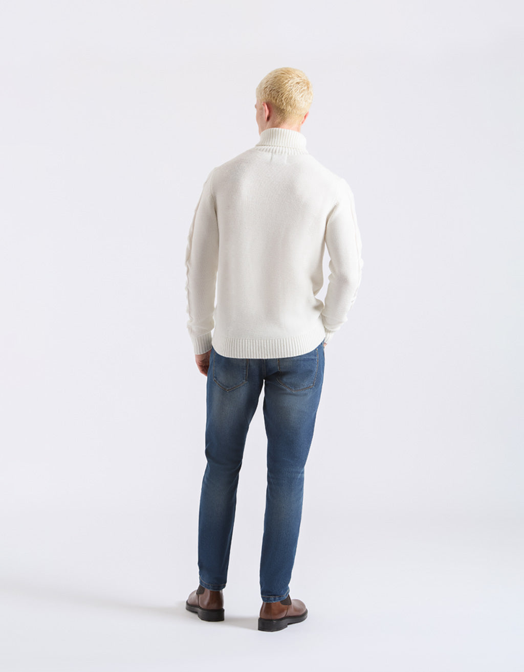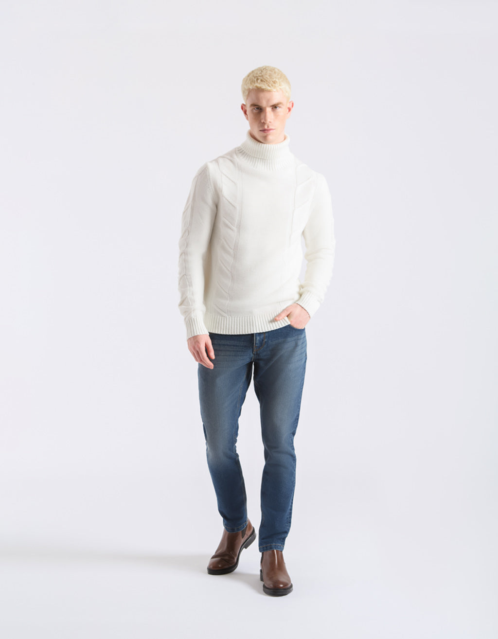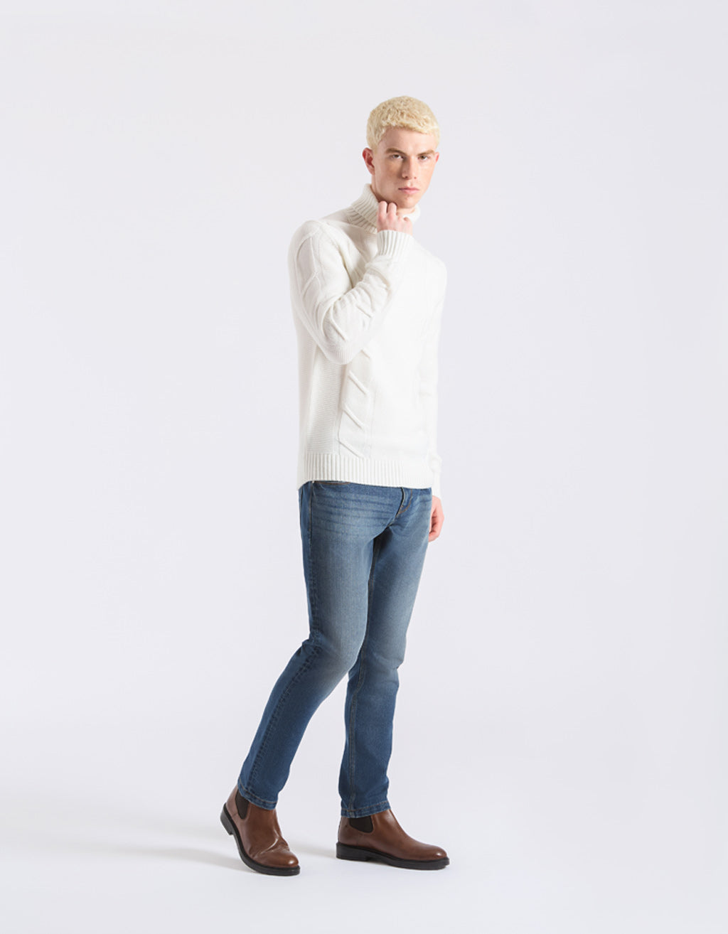 Jeans regular fit in cotone cinque tasche con tre tasche sul davanti e due sul retro. Chiusura con cerniera e bottone. Vestibilità Regular Fit.