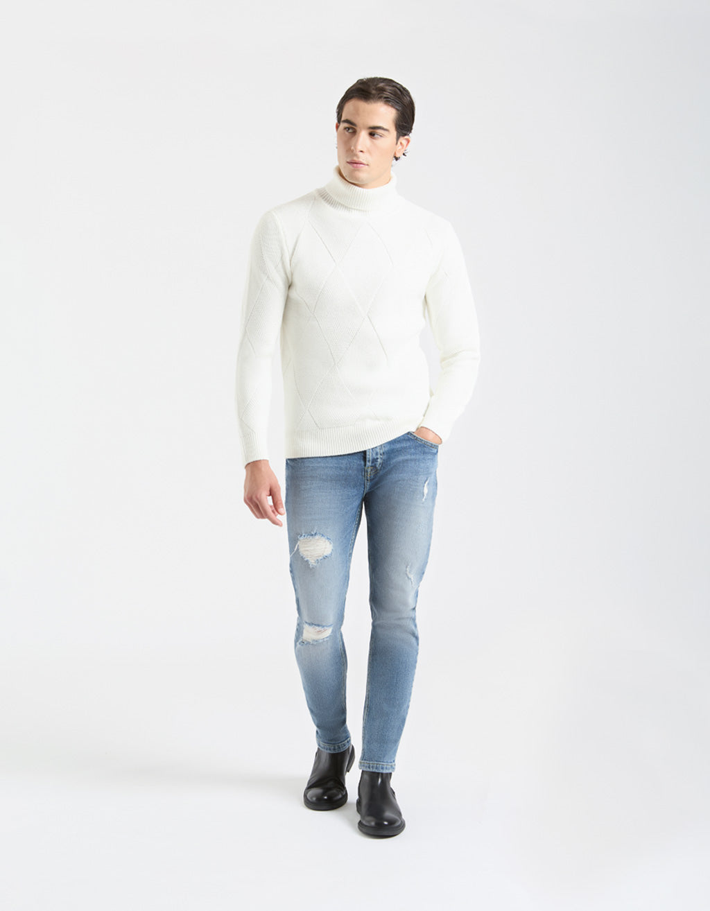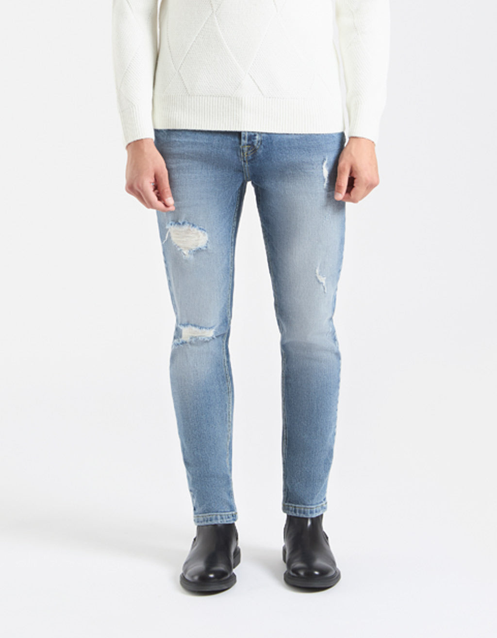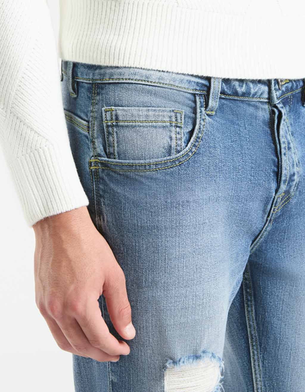 ALTEZZA MODELLO 185cm - TAGLIA 48 Jeans skinny fit in cotone con strappi cinque tasche con tre...