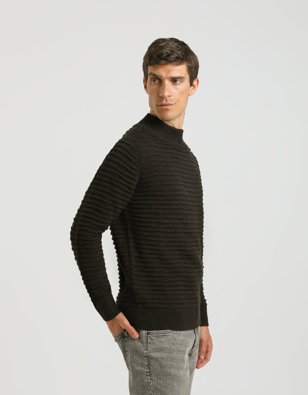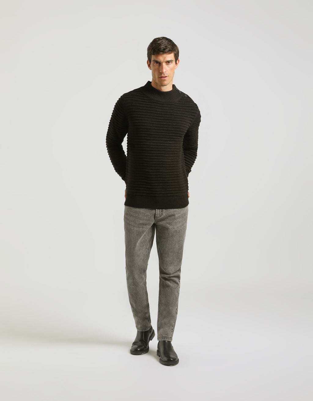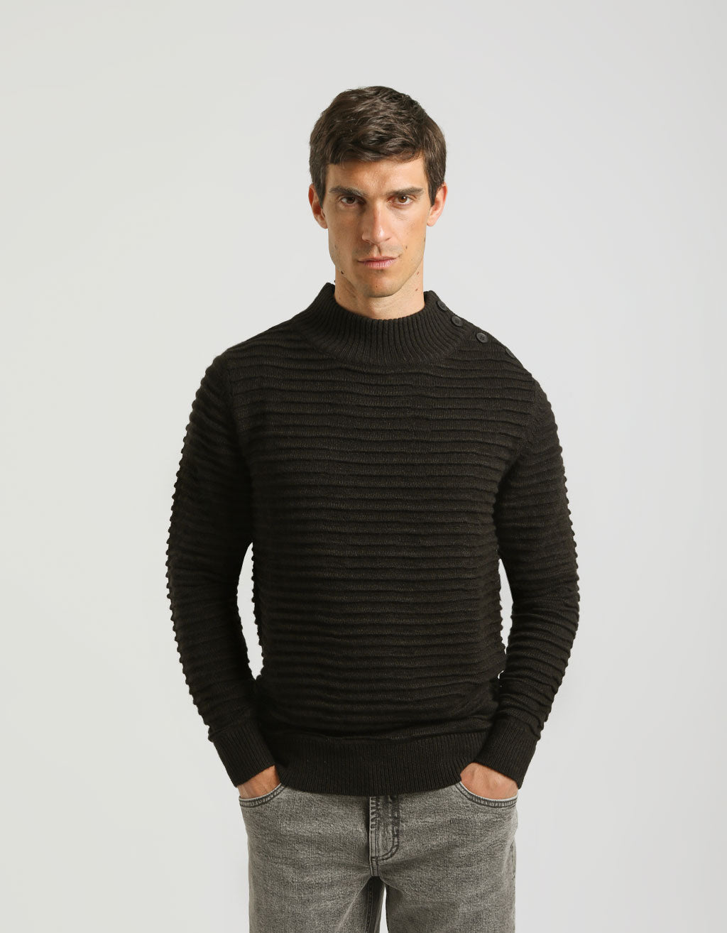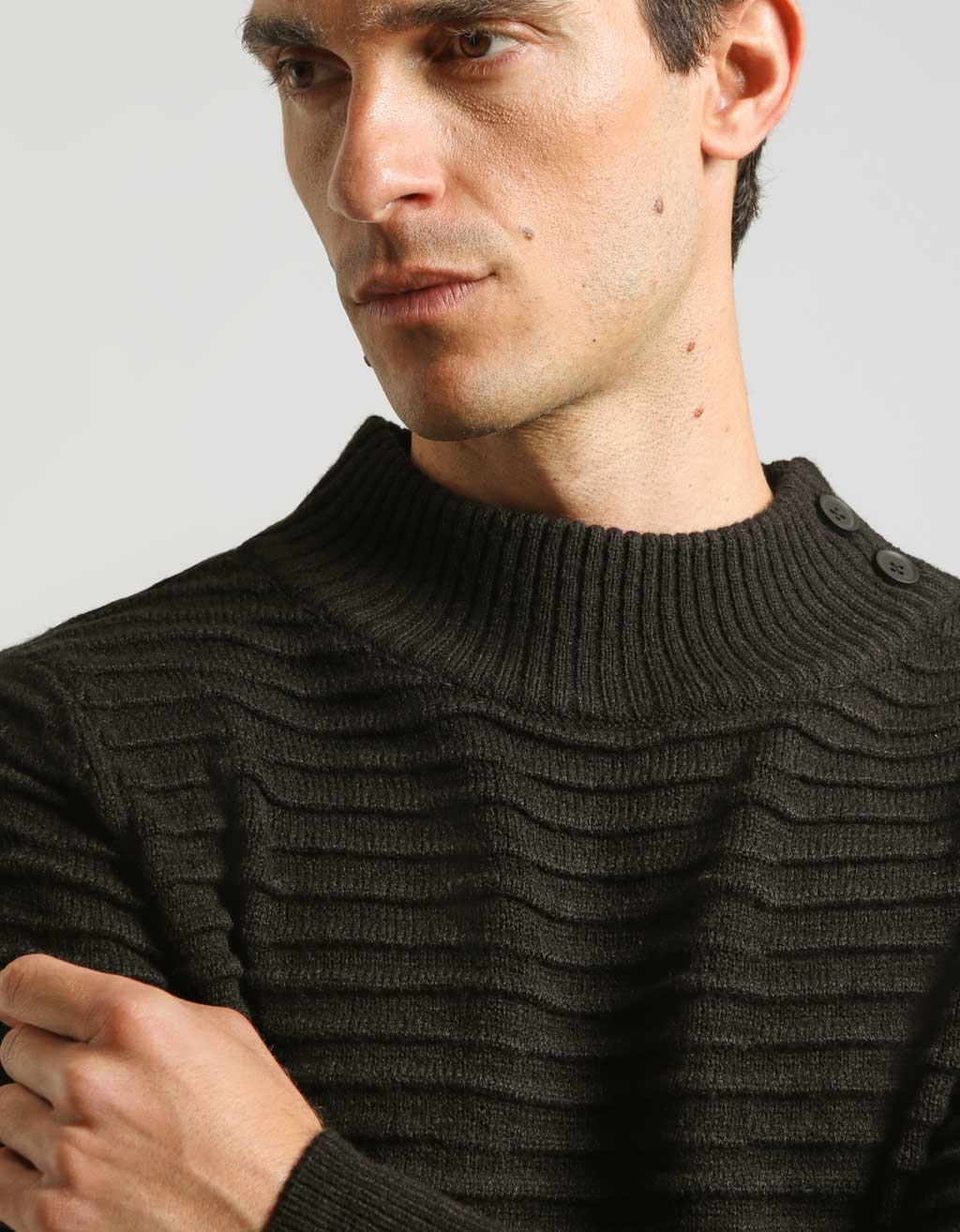 ALTEZZA MODELLO 185cm - TAGLIA L Maglia collo lupetto con bottoni strutturata. Tinta unita, bordi a coste...