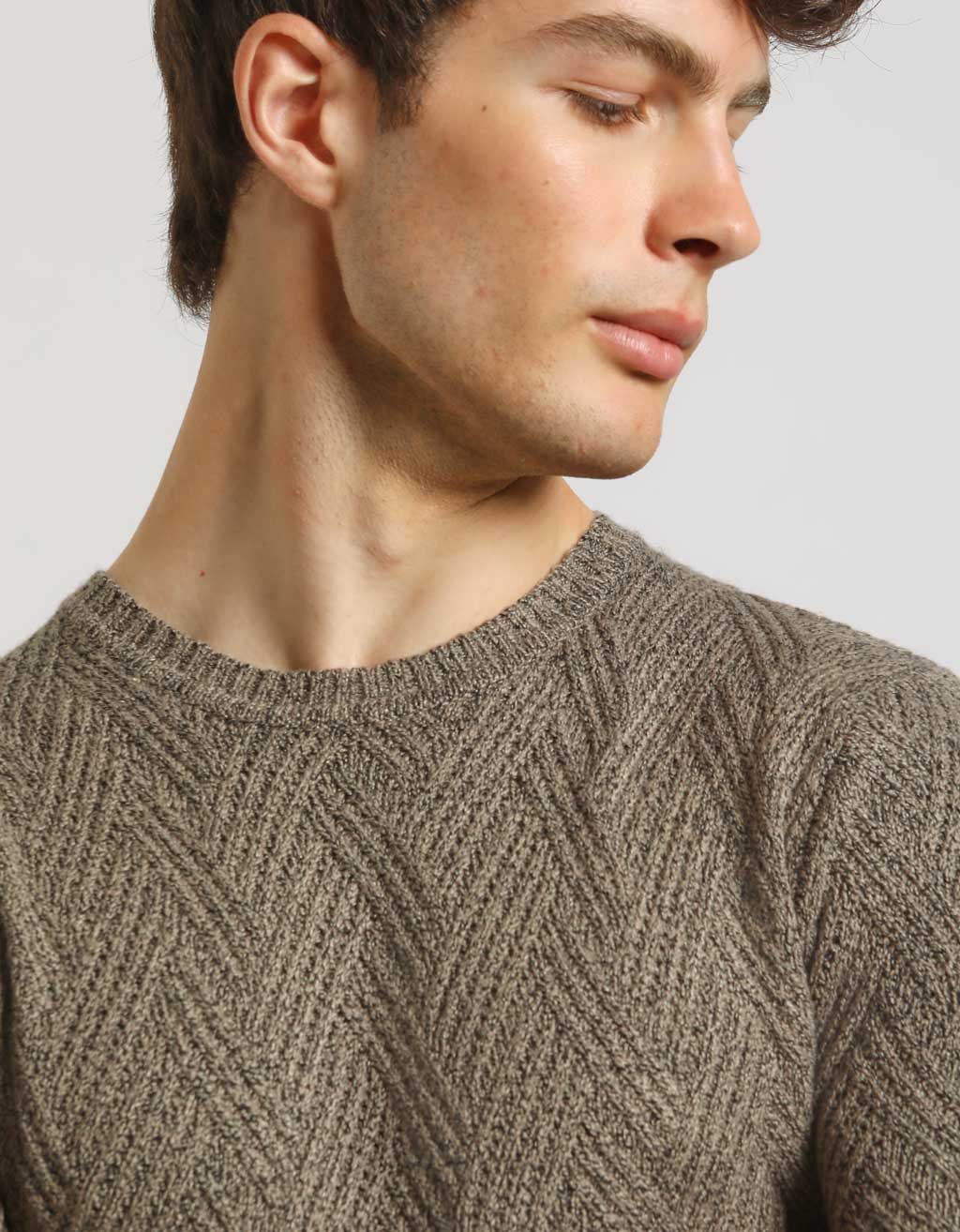 ALTEZZA MODELLO 185cm - TAGLIA L Maglia girocollo colorblock in trama operata con scollo rotondo e maniche...