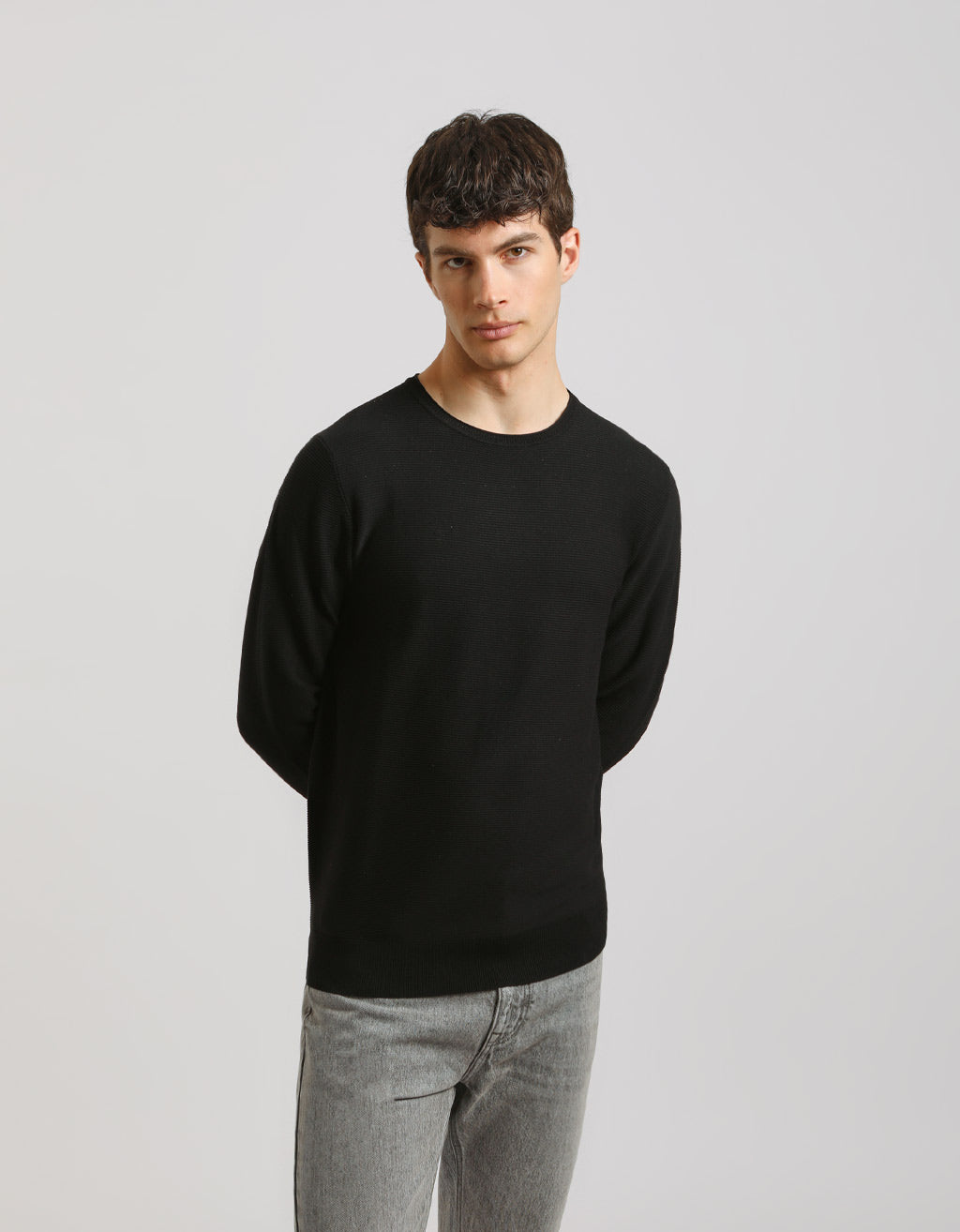 ALTEZZA MODELLO 185cm - TAGLIA L Maglia girocollo strutturata in misto viscosa con collo rotolino. Tinta unita...