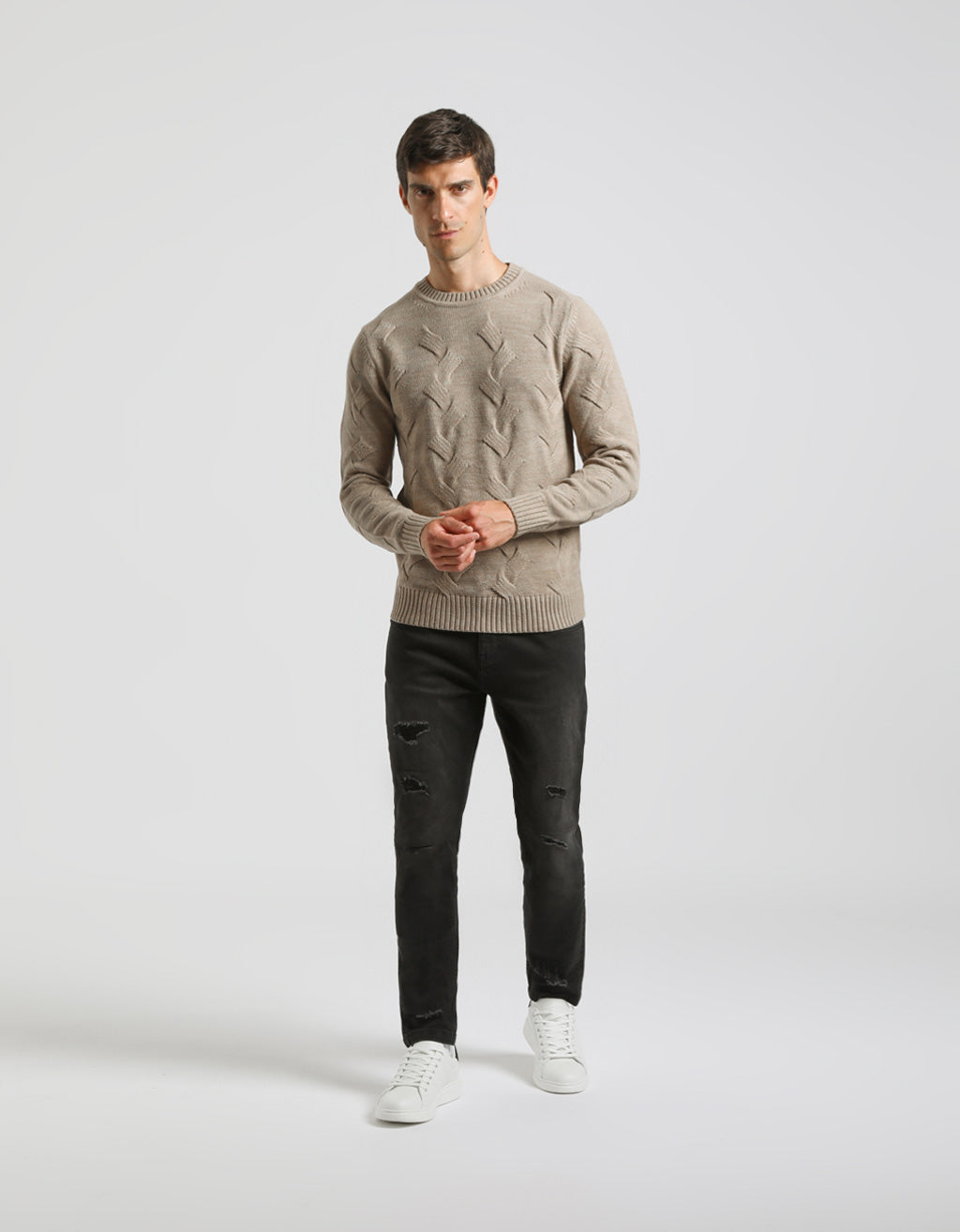ALTEZZA MODELLO 185cm - TAGLIA L Maglia manica lunga girocollo con struttura intrecciata e bordi a coste.