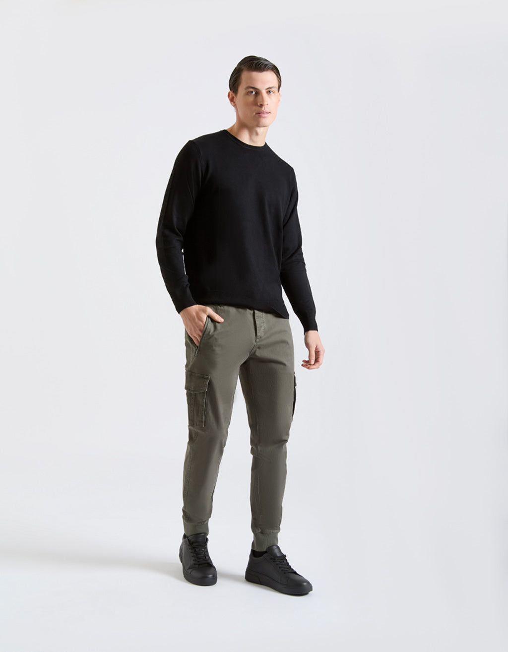 ALTEZZA MODELLO 185cm - TAGLIA 48 Pantaloni stretch modello cargo con tasconi laterali. Tasche con zip, due...