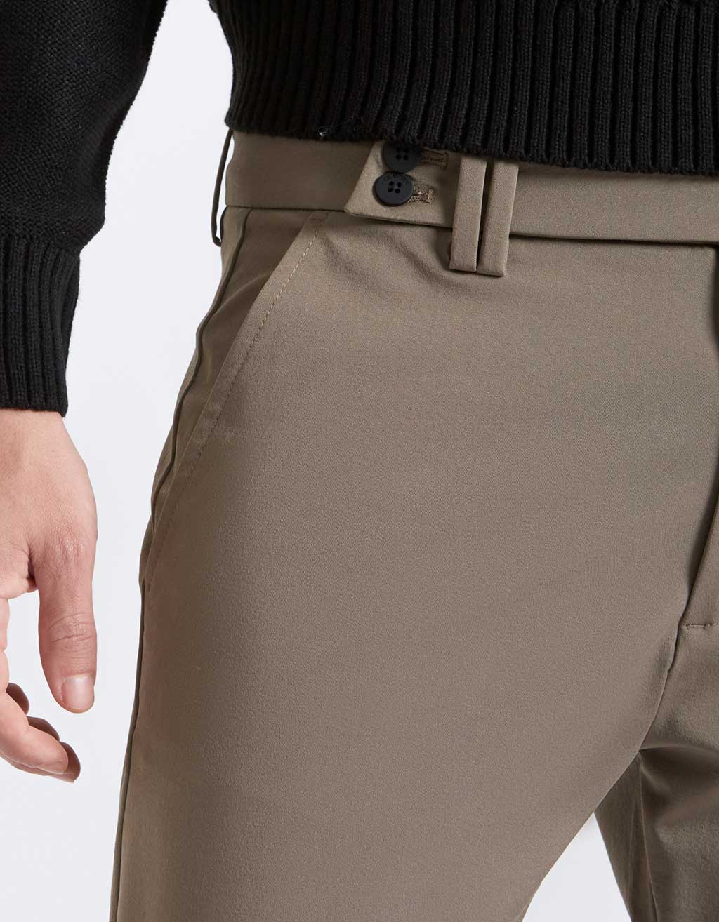 ALTEZZA MODELLO 185cm - TAGLIA 48 Pantaloni modello chinoin nylon con cinturino. Tasche america, taschino portamonete e due tasche doppio filetto con bottone posteriori. Chiusura frontale con cerniera e bottone. Slim fit.