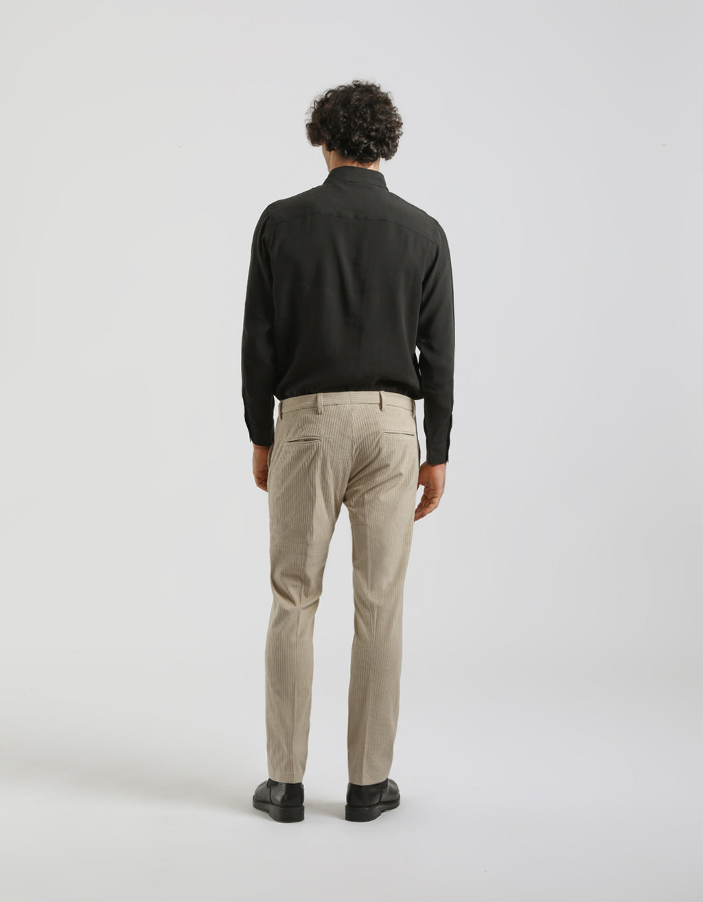 ALTEZZA MODELLO 185cm - TAGLIA 48 Pantaloni a coste modello chino in velluto. Tasche america e due tasche doppio filetto con bottone posteriori. Chiusura frontale con cerniera e bottone. Slim fit.